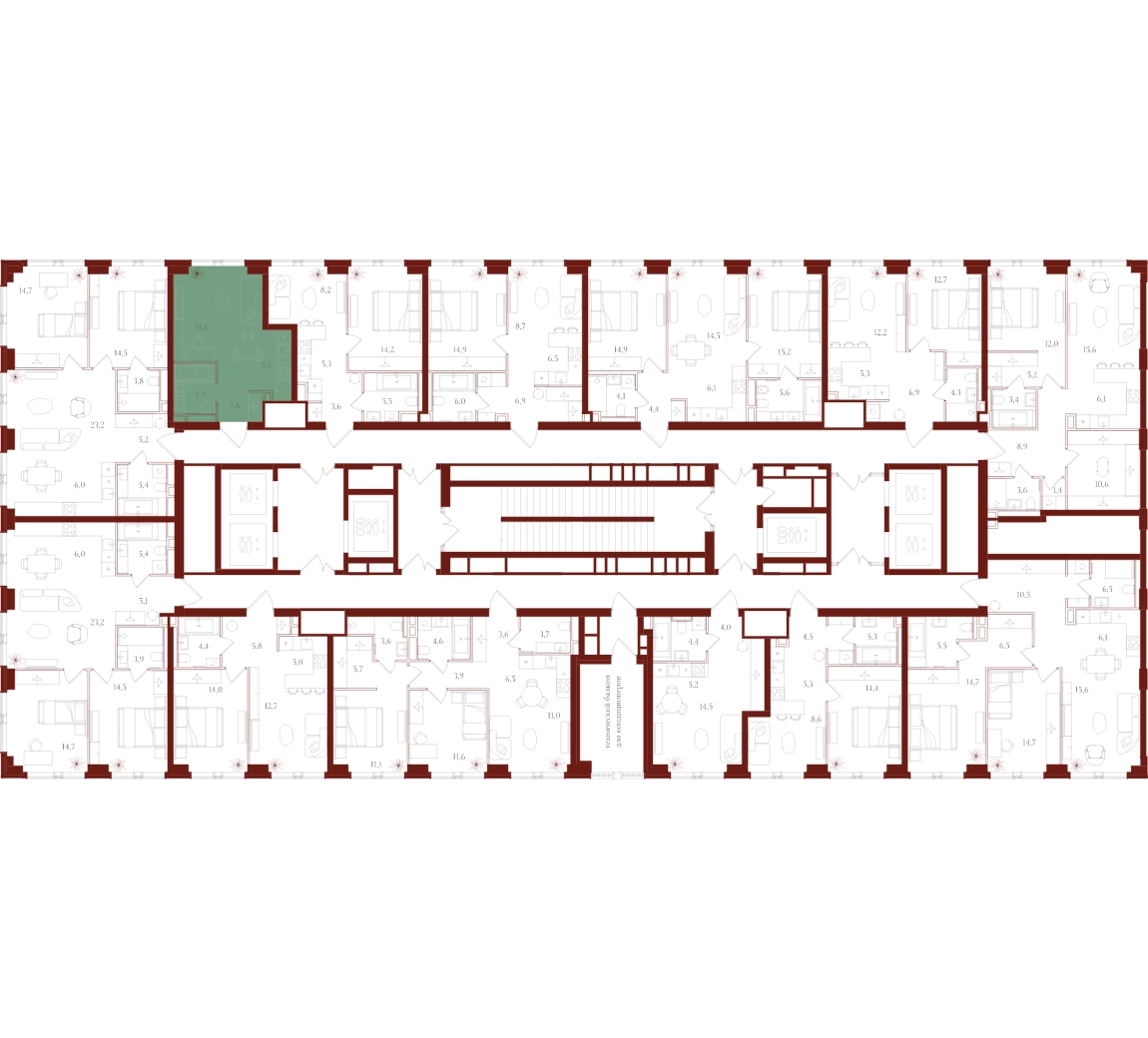 Только для резидентов: • Бьюти-комната • Коворкинг, переговорные и акустические кабинеты • Детская игровая комната • Спортзал и студия для тренировок • Просторные колясочные • Сервисная комната • Лапомойки для домашних питомцев