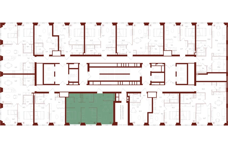 Только для резидентов: • Бьюти-комната • Коворкинг, переговорные и акустические кабинеты • Детская игровая комната • Спортзал и студия для тренировок • Просторные колясочные • Сервисная комната • Лапомойки для домашних питомцев