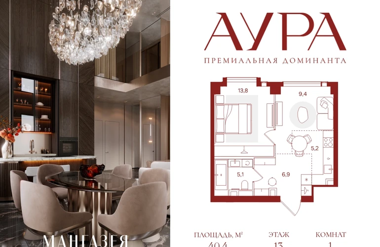 1-комнатная квартира площадью 40.40 м2. Высота потолков – 3.16 м. Этаж 13 из 41.О проекте АУРА новая премиальная доминанта Москвы в 10 минутах от Садового кольца. Проект состоит из 42-этажной Бронзовой башни и 41-этажной Серебряной. Рядом набережная Москвы-реки, Даниловский рынок, музеи и галереи, престижные школы и вузы.