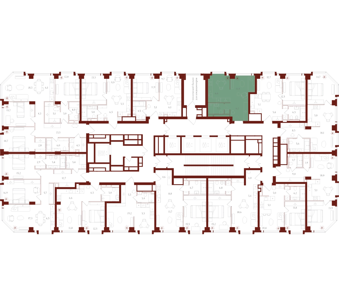 Только для резидентов: • Бьюти-комната • Коворкинг, переговорные и акустические кабинеты • Детская игровая комната • Спортзал и студия для тренировок • Просторные колясочные • Сервисная комната • Лапомойки для домашних питомцев