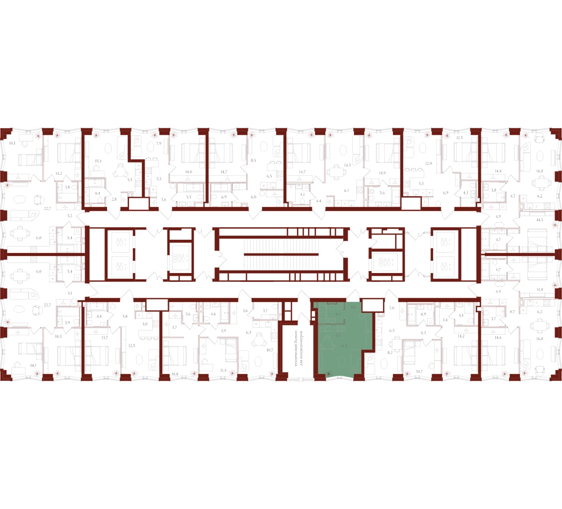 Только для резидентов: • Бьюти-комната • Коворкинг, переговорные и акустические кабинеты • Детская игровая комната • Спортзал и студия для тренировок • Просторные колясочные • Сервисная комната • Лапомойки для домашних питомцев