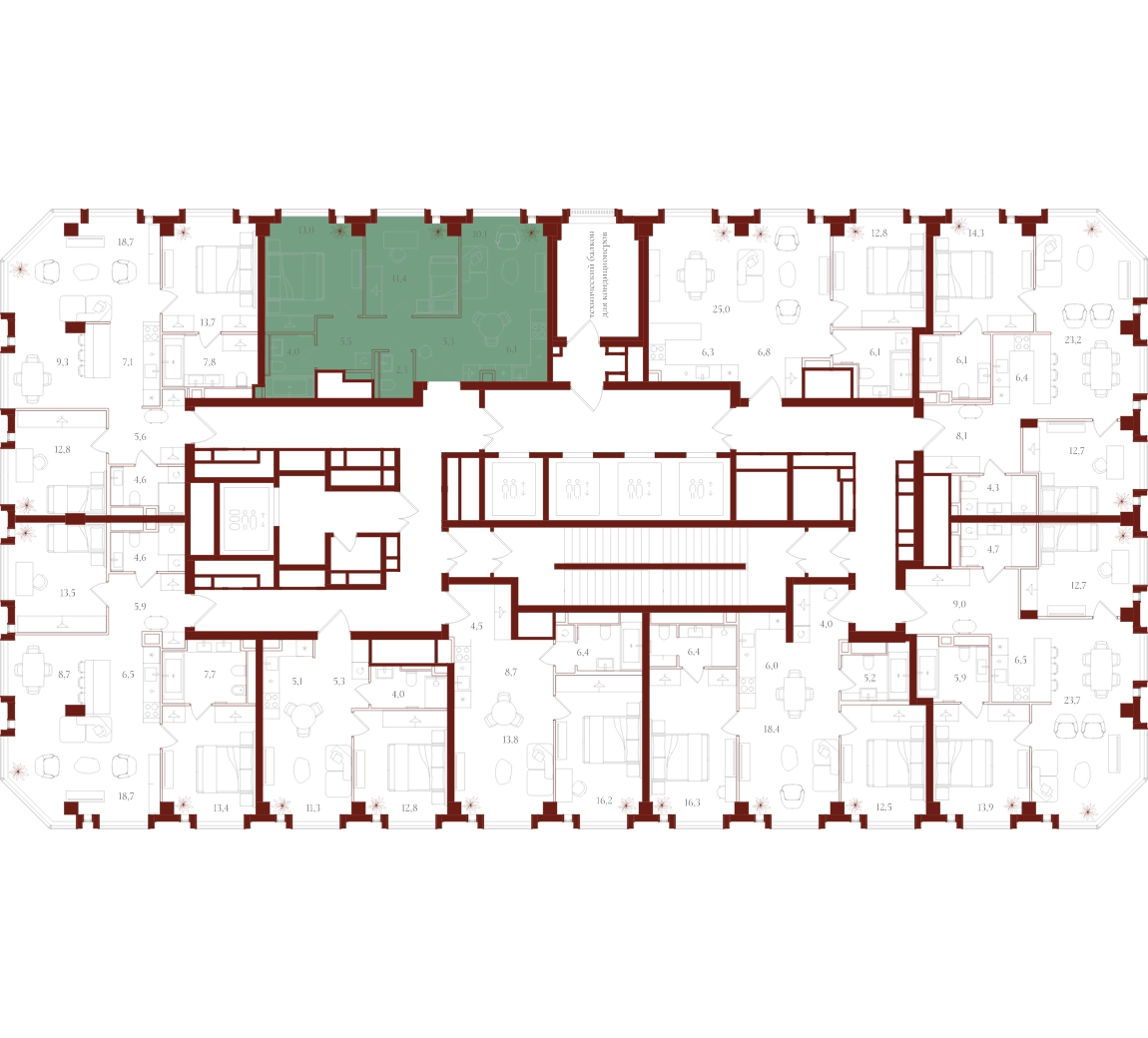Только для резидентов: • Бьюти-комната • Коворкинг, переговорные и акустические кабинеты • Детская игровая комната • Спортзал и студия для тренировок • Просторные колясочные • Сервисная комната • Лапомойки для домашних питомцев