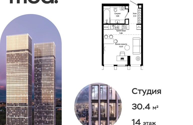 Прямая продажа от застройщика. Жилой комплекс премиум-класса Mod. Продается студия общей площадью 30.40 кв. м с предчистовой отделкой в ЖК Mod на 14-м этаже 44 этажного дома. Mod - жилой комплекс премиум-класса в историческом районе Москвы Марьина Роща. Пятый корпус станет частью единого высотного ансамбля, который поднимается над столицей и очерчивает новый горизонт города. Расположение корпуса Mod.C отличается тем, что виды на юго-запад Москвы не ограничены существующей застройкой. Почти все главные доминанты столицы — как на ладони: от сталинских высоток до небоскрёбов делового центра. Любоваться достопримечательностями будет вдвойне приятнее через панорамные окна. Закрытая территория жилого комплекса, продуманное благоустройство, эксплуатируемые кровли стилобата, образовательный центр с детским садом создают приватное пространство для тихой семейной жизни, а городская площадь с фонтанами, ресторан, супермаркет, коммерческая инфраструктура на первых этажах привносят созвучную с ритмом города динамику. Преимущества проекта: • В шаговой доступности новый деловой кластер Москвы • Выразительная авторская архитектура • Единственные в Москве фасады башен из натурального камня • Панорамное остекление и высота потолков до 4,8 м • Квартиры и апартаменты с отделкой MR Base • Многоуровневое благоустройство с зонированием на закрытой территории • Многофункциональный образовательный детский центр с детским садом • Двухуровневый подземный паркинг Транспортная доступность: • 5 минут пешком до станции метро «Марьина роща» • 3 минуты до ТТК • 15 минут до Цветного бульвара Компания MR Group предлагает своим клиентам специальные условия приобретения квартир в рамках программ ипотечного кредитования от банков-партнеров.О застройщике