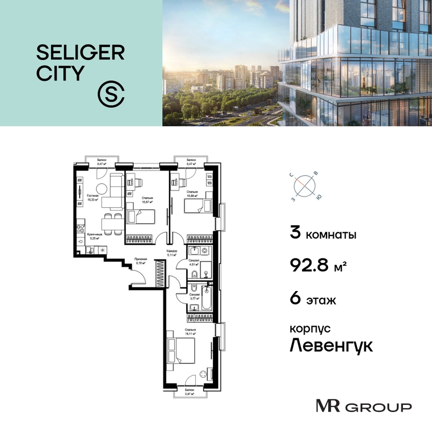 Прямая продажа от застройщика. Продаётся 3-к квартира общей площадью 92.82 кв. м без отделки в ЖК «Селигер Сити» на 6-м этаже 21 этажного дома. Селигер Сити — это уютное пространство, где предусмотрена застройка разной этажности, чтобы каждый покупатель мог выбрать то, что ему по душе: невысокие дома или небоскребы, с верхних этажей которых будут открываться отличные виды на город. Преимущества проекта: Первые три очереди сданы. • 2 минуты пешком от метро «Селигерская» • Архитектурное решение от голландского бюро MLA + • 8 корпусов разной этажности от 8 до 45 этажей • Одна из самых больших придомовых территорий в Москве — размером с 4 футбольных поля • Огороженная охраняемая территория, круглосуточное видеонаблюдение • Европейский подход к благоустройству от бюро WOWHaus: детские площадки для разных возрастов, спортивные площадки, площадки воркаута, дорожки для бега и пеших прогулок, скейтпарк, хоккейная площадка, площадка для выгула собак • Искусственный пруд на территории комплекса с благоустроенной набережной и мостом • Продуманная концепция инфраструктуры: уютные кафе и рестораны, супермаркет, магазин фермерских продуктов, бытовые службы, салон красоты, детские сады • Панорамные окна высотой до 2,5 м, в корпусах 3 очереди витражное остекление высотой до 4,2 м • Широкий выбор квартир — от компактных студий до просторных квартир с тремя спальнями и пентхаусов • Четыре вида дизайнерской отделки квартир от бюро Вlank Architects • Возможность купить квартиру с предчистовой отделкой white box • «Умный дом» на платформе Ujin. Система безопасности, вход на территорию и в подъезд по биометрии или BLE-метке, въезд в паркинг по считывателю номера, контроль климата. Все для комфортной жизни! • Лобби по индивидуальному дизайн проекту от европейского бюро Вlank Architects: лаунж-зоны, ресепшен, колясочная, помещение для мытья лап животным после прогулки • Подземный паркинг на 2189 машино-мест по индивидуальному дизайну, с зарядными устройствами для электромобилей, постами для подкачки шин и келлерами • Надежный девелопер с опытом премиальных проектов MR Group Расположение комплекса: • 2 минуты от станции метро «Селигерская» • 7 минут на машине до станции метро «Окружная» • Предусмотрен удобный выезд в сторону ТТК (всего 9 км или 15 минут без пробок) • МКАД в 10 минутах на машине Компания MR Group предлагает своим клиентам специальные условия приобретения квартир в рамках программ ипотечного кредитования от банков-партнеров.О застройщике