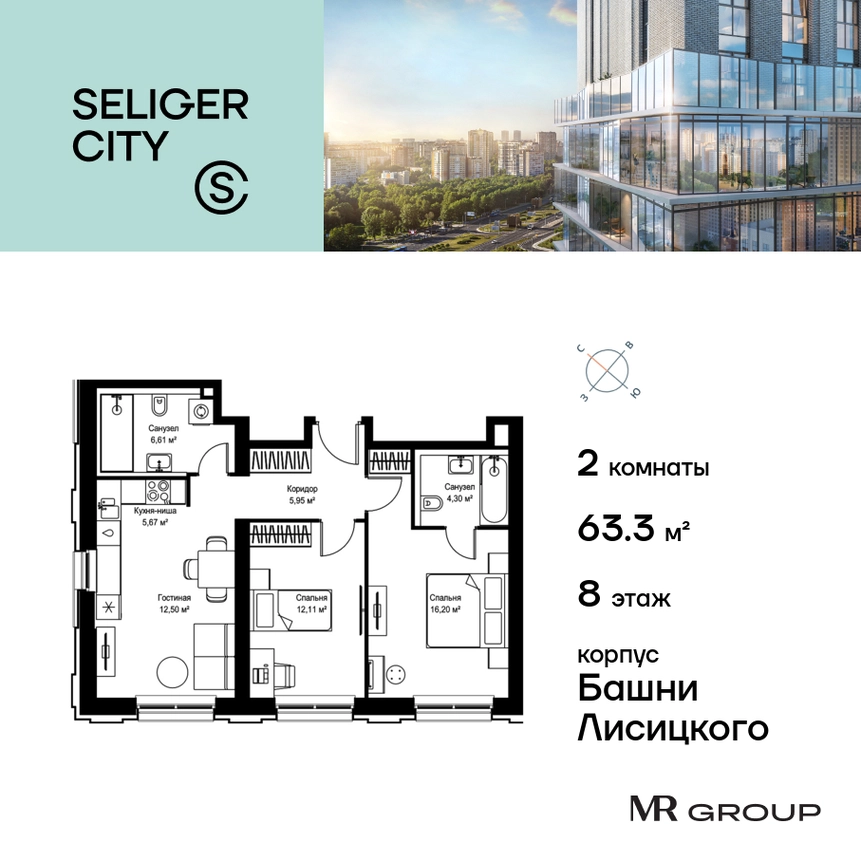 Прямая продажа от застройщика. Продаётся 2-к квартира общей площадью 63.34 кв. м без отделки в ЖК «Селигер Сити» на 8-м этаже башни Лисицкого. Корпуса четвертой очереди ЖК «Селигер сити» названы в честь трех великих представителей науки и архитектуры, новаторское видение которых — слишком смелое для своего времени — нашло воплощение в уникальных домах жилого комплекса. Вдохновленные авангардными идеями знаменитого советского архитектора Эля Лисицкого, архитекторы создали яркий центр притяжения всего района, задающий новый стандарт жизни в современном мегаполисе — две высокие «Башни Лисицкого» с современной интерпретацией горизонтального небоскреба. Преимущества проекта: Первые три очереди сданы. • 2 минуты пешком от метро «Селигерская» • Архитектурное решение от голландского бюро MLA + • 8 корпусов разной этажности от 8 до 45 этажей • Одна из самых больших придомовых территорий в Москве — размером с 4 футбольных поля • Огороженная охраняемая территория, круглосуточное видеонаблюдение • Европейский подход к благоустройству от бюро WOWHaus: детские площадки для разных возрастов, спортивные площадки, площадки воркаута, дорожки для бега и пеших прогулок, скейтпарк, хоккейная площадка, площадка для выгула собак • Искусственный пруд на территории комплекса с благоустроенной набережной и мостом • Продуманная концепция инфраструктуры: уютные кафе и рестораны, супермаркет, магазин фермерских продуктов, бытовые службы, салон красоты, детские сады • Панорамные окна высотой до 2,5 м, в корпусах 3 очереди витражное остекление высотой до 4,2 м • Широкий выбор квартир — от компактных студий до просторных квартир с тремя спальнями и пентхаусов • Четыре вида дизайнерской отделки квартир от бюро Вlank Architects • Возможность купить квартиру с предчистовой отделкой white box • «Умный дом» на платформе Ujin. Система безопасности, вход на территорию и в подъезд по биометрии или BLE-метке, въезд в паркинг по считывателю номера, контроль климата. Все для комфортной жизни! • Лобби по индивидуальному дизайн проекту от европейского бюро Вlank Architects: лаунж-зоны, ресепшен, колясочная, помещение для мытья лап животным после прогулки • Подземный паркинг на 2189 машино-мест по индивидуальному дизайну, с зарядными устройствами для электромобилей, постами для подкачки шин и келлерами • Надежный девелопер с опытом премиальных проектов MR Group Расположение комплекса: • 2 минуты от станции метро «Селигерская» • 7 минут на машине до станции метро «Окружная» • Предусмотрен удобный выезд в сторону ТТК (всего 9 км или 15 минут без пробок) • МКАД в 10 минутах на машине Компания MR Group предлагает своим клиентам специальные условия приобретения квартир в рамках программ ипотечного кредитования от банков-партнеров.О застройщике