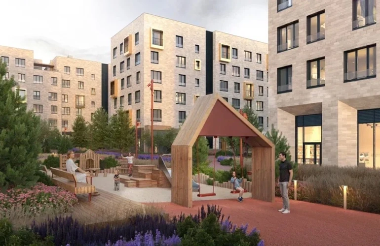 На территории квартала предусмотрена полная внутренняя инфраструктура: подземный паркинг, гостевые парковочные места, закрытая безопасная территория с системами видеонаблюдения и охраны. Для детей запланированы игровые площадки, круглый год — спортивные зоны, летние и зимние активности (воркаут, скалодром, каток). В квартале предусмотрены детские сады, школа, фитнес-центр со spa, медицинские пункты, кафе, минимаркет, аптека и салоны на первых этажах. Зелёные бульвары, прогулочные аллеи и ландшафтное благоустройство создают комфортную экологичную среду.