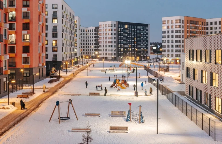 В проекте только 9-этажные дома, окружённые живописными локациями и природными памятниками, — всё это создаёт атмосферу спокойной загородной жизни.