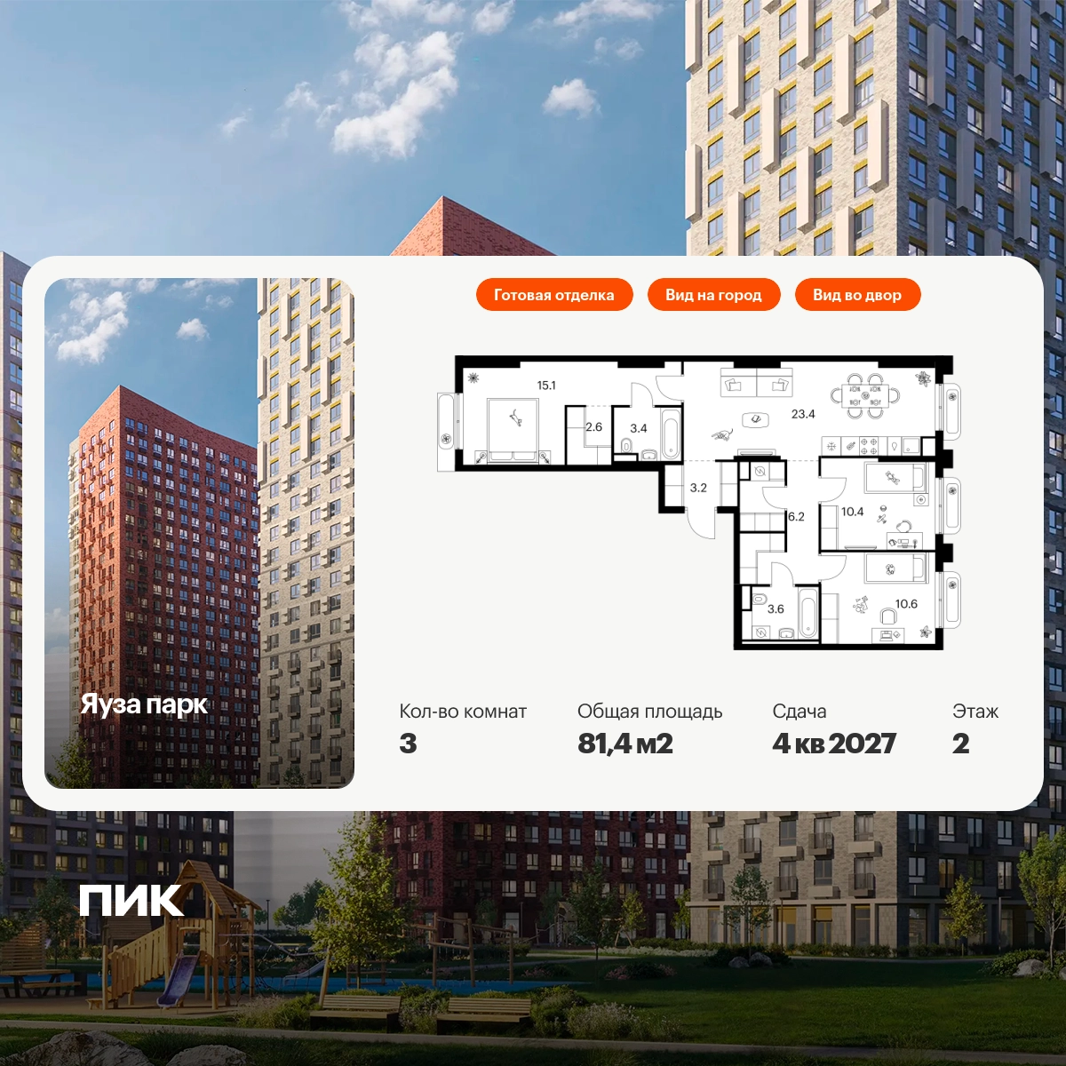 В Мытищах Московской области продаётся 3-комнатная квартира квартира площадью 81.4 на 2 этаже 15 этажного дома (корпус 13, секция 3) в проекте ПИК «Яуза парк». Удобное расположение 5 минут пешком до ж/д станции Мытищи и 20 минут на автомобиле до метро «Медведково». 3 минуты на автомобиле до Ярославского шоссе и 10 минут до МКАД. 8 минут пешком до ТРЦ «Красный кит». 20 минут пешком набережной реки Яузы и Мытищинского парка культуры и отдыха. Особенности проекта «Яуза парк» — современный квартал с архитектурой от бюро KATARSIS и RHIZOME. В проекте будет вся необходимая инфраструктура. А удобные и разнообразные планировки позволят каждому выбрать квартиру для собственного сценария жизни. Преимущества проекта: Отделка:Готовая Особенности планировки: Гардеробная, Постирочная, Мастер-спальня, Разнесенные спальни, Кухня-гостиная, Два и более санузла, Умная планировка Два детских сада на 225 и 350 мест, школа для 1170 учеников и поликлиника на территории проекта. Дворы-парки с детскими и спортивными площадками. Пешеходный бульвар для прогулок и отдыха с отреставрированной водонапорной башней XIX века. Магазины, кафе и полезные сервисы на первых этажах домов. Многоуровневые и подземный паркинги. АртикулО застройщике
