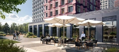 На территории квартала появятся два детских сада с бассейном и подземный паркинг. Всего в минуте ходьбы от проекта откроется школа для 1000 учеников. Во дворах мы построим уютные парки с местами для отдыха и детскими площадками. А на первых этажах домов появятся кафе, магазины и полезные сервисы.