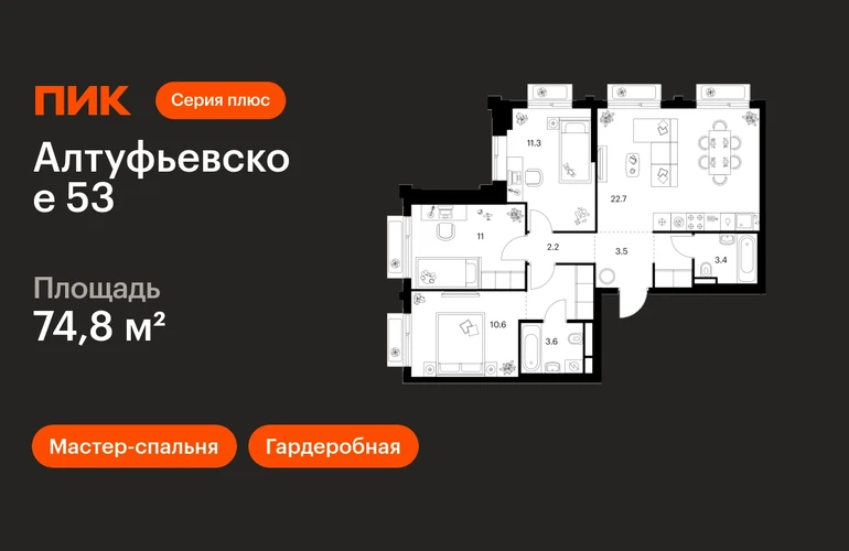 В Алтуфьевском районе продаётся 3-комнатная квартира квартира площадью 74.8 на 10 этаже 32 этажного дома (корпус, секция) в проекте ПИК «Алтуфьевское 53». Удобное расположение 15 минут на общественном транспорте до станции метро «Отрадное». 20 минут пешком до МЦД «Дегунино». 2 минуты на автомобиле до Алтуфьевского шоссе и 20 минут до ТТК. 9 минут на машине до Ботанического сада и ВДНХ. Особенности проекта «Алтуфьевское 53» — современный проект «Серии плюс» с авторской архитектурой в районе, где создана качественная среда для полноценной жизни, работы и отдыха. А удобные и разнообразные планировки позволят каждому выбрать квартиру для собственного сценария жизни. Преимущества проекта: Отделка: Готовая Особенности планировки: Гардеробная, Мастер-спальня, Кухня-гостиная, Два и более санузла, Умная планировка Лобби с дизайнерской отделкой, зонами ожидания, гостевыми санузлами и колясочными. Два детских сада с бассейном для 200 и 225 малышей и школа для 1000 учеников в минуте ходьбы от проекта. Дворы-парки с местами для отдыха, игровыми и спортивными площадками. Подземный паркинг. АртикулО застройщике