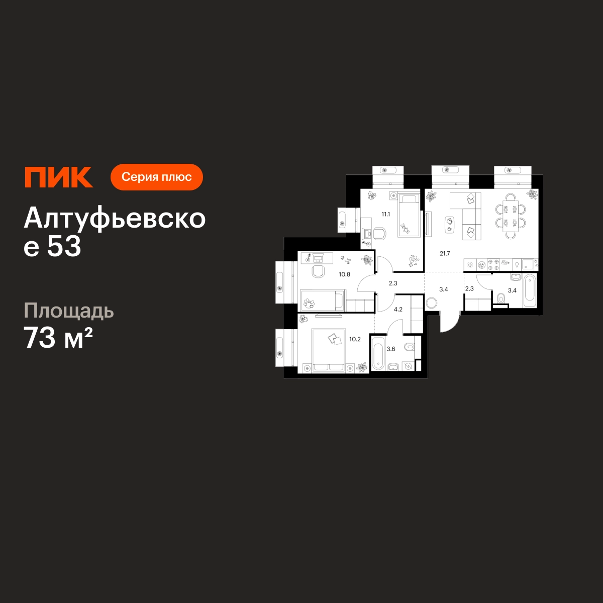 В Алтуфьевском районе продаётся 3-комнатная квартира квартира площадью 73 на 24 этаже 32 этажного дома (корпус, секция) в проекте ПИК «Алтуфьевское 53». Удобное расположение 15 минут на общественном транспорте до станции метро «Отрадное». 20 минут пешком до МЦД «Дегунино». 2 минуты на автомобиле до Алтуфьевского шоссе и 20 минут до ТТК. 9 минут на машине до Ботанического сада и ВДНХ. Особенности проекта «Алтуфьевское 53» — современный проект «Серии плюс» с авторской архитектурой в районе, где создана качественная среда для полноценной жизни, работы и отдыха. А удобные и разнообразные планировки позволят каждому выбрать квартиру для собственного сценария жизни. Преимущества проекта: Отделка: Готовая Особенности планировки: Гардеробная, Мастер-спальня, Кухня-гостиная, Два и более санузла, Умная планировка Лобби с дизайнерской отделкой, зонами ожидания, гостевыми санузлами и колясочными. Два детских сада с бассейном для 200 и 225 малышей и школа для 1000 учеников в минуте ходьбы от проекта. Дворы-парки с местами для отдыха, игровыми и спортивными площадками. Подземный паркинг. АртикулО застройщике