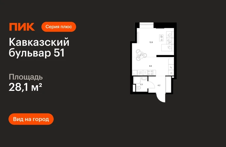 В районе Царицыно продаётся студия квартира площадью 28.1 на 2 этаже 32 этажного дома (корпус, секция) в проекте ПИК «Кавказский бульвар 51». Удобное расположение 17 минут пешком до станции метро «Кантемировская» и 20 минут до станции «Чертаново». 10 минут на машине до МКАД, 11 минут до Варшавского шоссе и 16 минут до ТТК. 8 минут пешком до Аршиновского и 13 минут до парка «Сосенки». 9 минут на автомобиле до музея-заповедника «Царицыно». Особенности проекта «Кавказский бульвар 51» — современный квартал в районе Царицыно. Проект частично реализован: первые дома уже сданы, а на первых этажах открыты магазины и полезные сервисы. В корпусах «Серии плюс» вас ждут продуманные планировки с мастер-спальней, кухней-гостиной и гардеробной. Преимущества проекта: Отделка: Готовая Дизайнерские лобби с быстрыми и тихими лифтами, кондиционерами, зонами ожидания и колясочными. Детский сад для 250 малышей и школа для 900 учеников на территории проекта. Пешеходный бульвар с местами для отдыха, игровыми и спортивными площадками. SportPark с футбольным и волейбольным полем, тренажёрами и памп-треком. Многоуровневый и подземные паркинги. Артикул _О застройщике