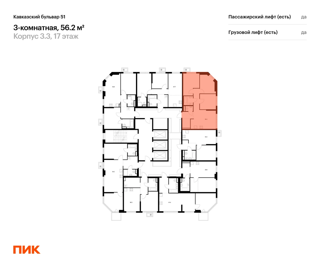 В районе Царицыно продаётся 3-комнатная квартира квартира площадью 56.2 на 17 этаже 23 этажного дома (корпус, секция) в проекте ПИК «Кавказский бульвар 51». Удобное расположение 17 минут пешком до станции метро «Кантемировская» и 20 минут до станции «Чертаново». 10 минут на машине до МКАД, 11 минут до Варшавского шоссе и 16 минут до ТТК. 8 минут пешком до Аршиновского и 13 минут до парка «Сосенки». 9 минут на автомобиле до музея-заповедника «Царицыно». Особенности проекта «Кавказский бульвар 51» — современный квартал в районе Царицыно. Проект частично реализован: первые дома уже сданы, а на первых этажах открыты магазины и полезные сервисы. В корпусах «Серии плюс» вас ждут продуманные планировки с мастер-спальней, кухней-гостиной и гардеробной. Преимущества проекта: Отделка: Готовая Особенности планировки: Гардеробная, Кухня-гостиная, Широкие окна, Умная планировка Дизайнерские лобби с быстрыми и тихими лифтами, кондиционерами, зонами ожидания и колясочными. Детский сад для 250 малышей и школа для 900 учеников на территории проекта. Пешеходный бульвар с местами для отдыха, игровыми и спортивными площадками. SportPark с футбольным и волейбольным полем, тренажёрами и памп-треком. Многоуровневый и подземные паркинги. Артикул _О застройщике