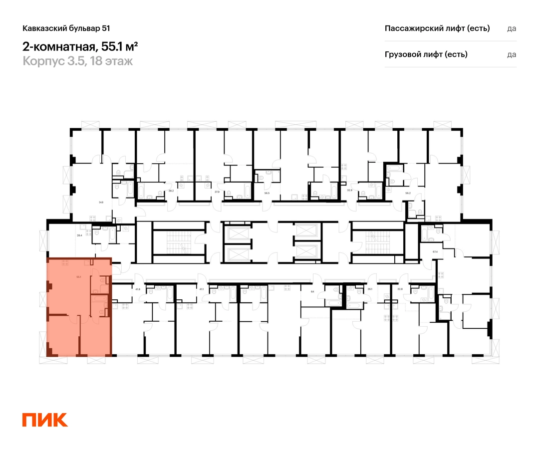 В районе Царицыно продаётся 2-комнатная квартира квартира площадью 55.1 на 18 этаже 24 этажного дома (корпус, секция) в проекте ПИК «Кавказский бульвар 51». Удобное расположение 17 минут пешком до станции метро «Кантемировская» и 20 минут до станции «Чертаново». 10 минут на машине до МКАД, 11 минут до Варшавского шоссе и 16 минут до ТТК. 8 минут пешком до Аршиновского и 13 минут до парка «Сосенки». 9 минут на автомобиле до музея-заповедника «Царицыно». Особенности проекта «Кавказский бульвар 51» — современный квартал в районе Царицыно. Проект частично реализован: первые дома уже сданы, а на первых этажах открыты магазины и полезные сервисы. В корпусах «Серии плюс» вас ждут продуманные планировки с мастер-спальней, кухней-гостиной и гардеробной. Преимущества проекта: Отделка: Предчистовая Особенности планировки: Мастер-спальня, Кухня-гостиная, Два и более санузла, Умная планировка Дизайнерские лобби с быстрыми и тихими лифтами, кондиционерами, зонами ожидания и колясочными. Детский сад для 250 малышей и школа для 900 учеников на территории проекта. Пешеходный бульвар с местами для отдыха, игровыми и спортивными площадками. SportPark с футбольным и волейбольным полем, тренажёрами и памп-треком. Многоуровневый и подземные паркинги. Артикул _О застройщике
