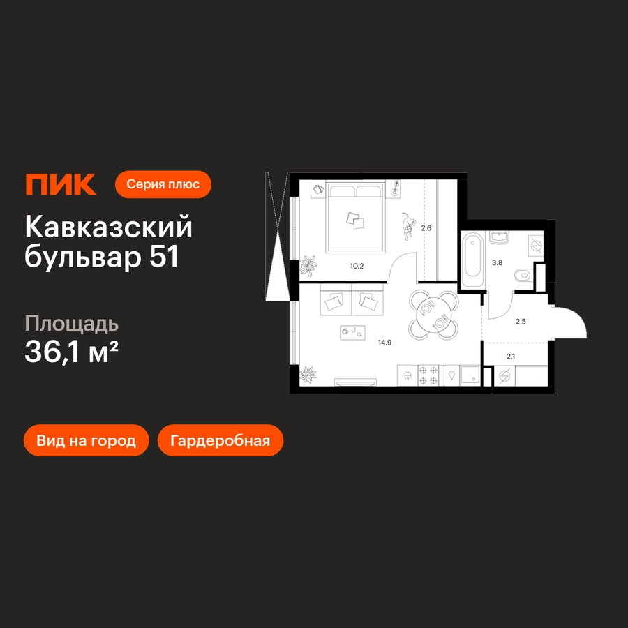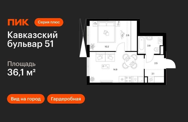 В районе Царицыно продаётся 1-комнатная квартира квартира площадью 36.1 на 7 этаже 24 этажного дома (корпус, секция) в проекте ПИК «Кавказский бульвар 51». Удобное расположение 17 минут пешком до станции метро «Кантемировская» и 20 минут до станции «Чертаново». 10 минут на машине до МКАД, 11 минут до Варшавского шоссе и 16 минут до ТТК. 8 минут пешком до Аршиновского и 13 минут до парка «Сосенки». 9 минут на автомобиле до музея-заповедника «Царицыно». Особенности проекта «Кавказский бульвар 51» — современный квартал в районе Царицыно. Проект частично реализован: первые дома уже сданы, а на первых этажах открыты магазины и полезные сервисы. В корпусах «Серии плюс» вас ждут продуманные планировки с мастер-спальней, кухней-гостиной и гардеробной. Преимущества проекта: Отделка: Предчистовая Особенности планировки: Гардеробная, Умная планировка Дизайнерские лобби с быстрыми и тихими лифтами, кондиционерами, зонами ожидания и колясочными. Детский сад для 250 малышей и школа для 900 учеников на территории проекта. Пешеходный бульвар с местами для отдыха, игровыми и спортивными площадками. SportPark с футбольным и волейбольным полем, тренажёрами и памп-треком. Многоуровневый и подземные паркинги. Артикул _О застройщике