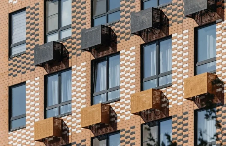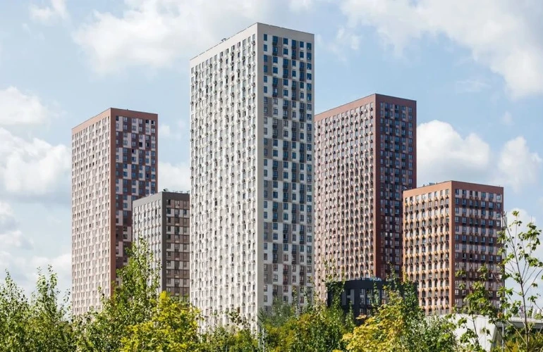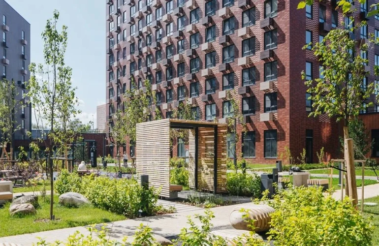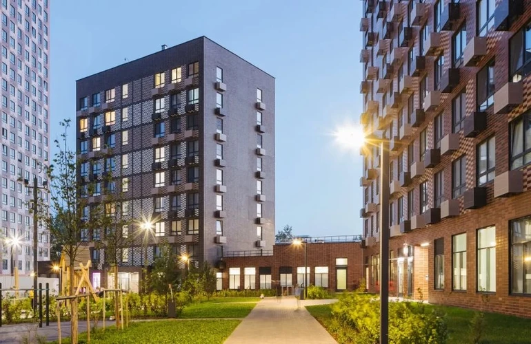 Это небольшой и уютный проект, в котором семь жилых домов, детский сад и два паркинга: плоскостной и подземный. Здания разной высоты — 9, 20 и 33 этажа — размещены так, чтобы пропускать много солнечного света во двор и квартиры.