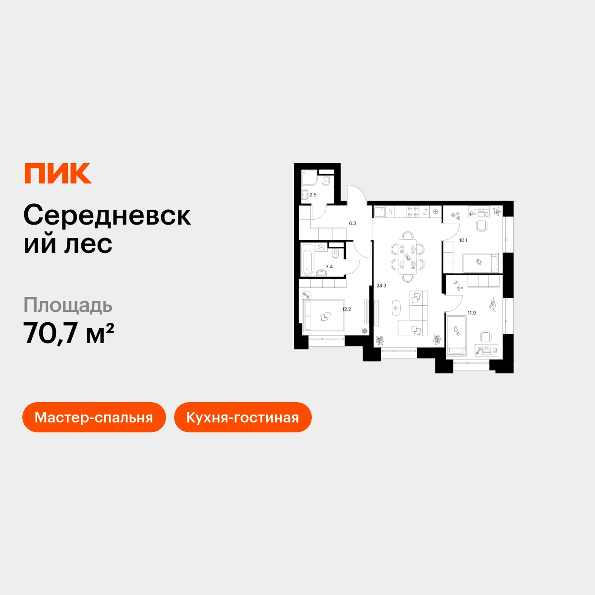 В Новой Москве продаётся 3-комнатная квартира квартира площадью 70.7 на 11 этаже 16 этажного дома (корпус, секция) в проекте ПИК «Середневский лес». Удобное расположение: 10–15 минут на автомобиле до станций метро «Аэропорт Внуково» и «Филатов луг». 18 минут на машине до МЦД-4 «Толстопальцево». 5 минут на автомобиле до Киевского шоссе и 18 минут до МКАД. 5 минут пешком до Валуевского леса. Особенности проекта «Середневский лес» — тихий и зелёный квартал в экологичном районе столицы с домами до 16 этажей. Дома в проекте отличаются современной архитектурой: цветовые решения фасадов выдержаны в тёплой гамме, а витражное остекление на входе в подъезды наполняет просторные холлы естественным светом. Преимущества проекта: Отделка: с чистовой отделкой Особенности планировки: Мастер-спальня, Разнесенные спальни, Кухня-ниша, Кухня-гостиная, Два и более санузла, Умная планировка Светлые холлы с двумя входами и быстрыми бесшумными лифтами. Школа на 1100 мест и два детских сада на 665 мест. Общественное пространство с игровыми площадками, местами для отдыха, пешеходными маршрутами и велопарковкой. Наземный паркинг. АртикулО застройщике
