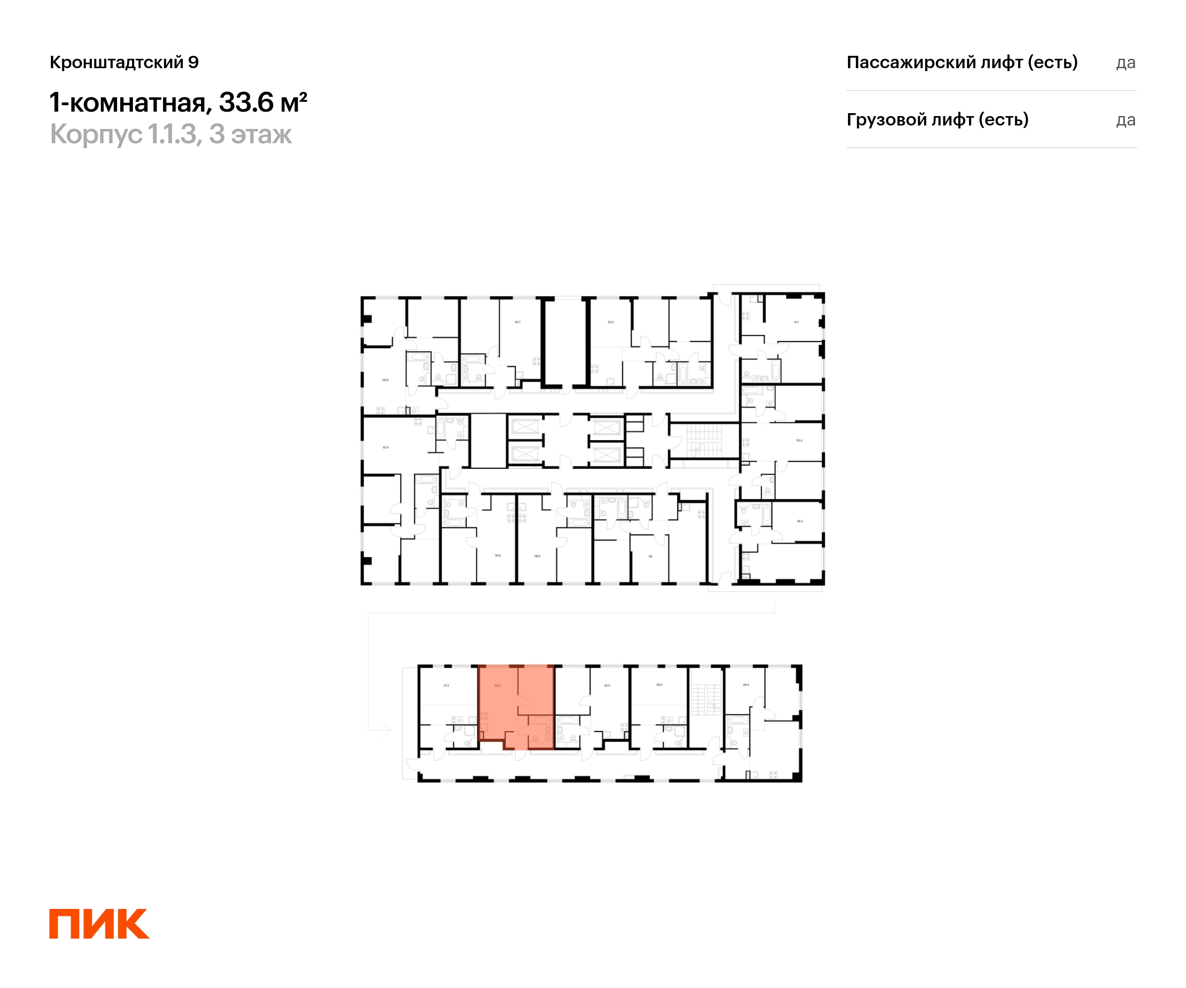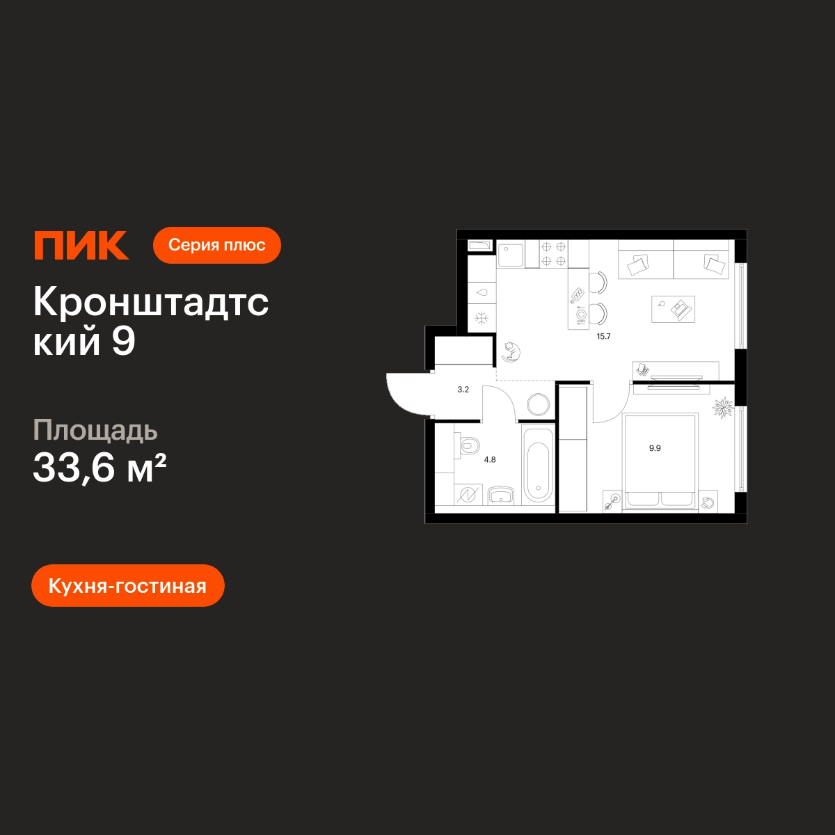 В Головинском районе продаётся 1-комнатная квартира квартира площадью 33.6 на 3 этаже 32 этажного дома (корпус 1.1.3, секция 3) в проекте ПИК «Кронштадтский 9». Удобное расположение 3 минуты пешком до станции метро «Водный стадион». 2 минуты на автомобиле до Ленинградского шоссе, 10 минут до ТТК и 16 минут до МКАД. 4 минуты пешком до ТЦ «Водный». 15 минут пешком до парка у Головинских прудов и 18 минут до парка «Дружба». Особенности проекта «Кронштадтский 9» — квартал «Серии плюс» с уникальной архитектурой. У проекта собственная инфраструктура, а удобные и разнообразные планировки позволят каждому выбрать квартиру для собственного сценария жизни. Преимущества проекта: Отделка: Дизайнерские лобби с зонами ожидания, кондиционерами, быстрыми тихими лифтами. Два детских сада на территории проекта. Дворы-парки с игровыми и спортивными площадками. Магазины, кафе и полезные сервисы на первых этажах домов. Подземный паркинг. АртикулО застройщике
