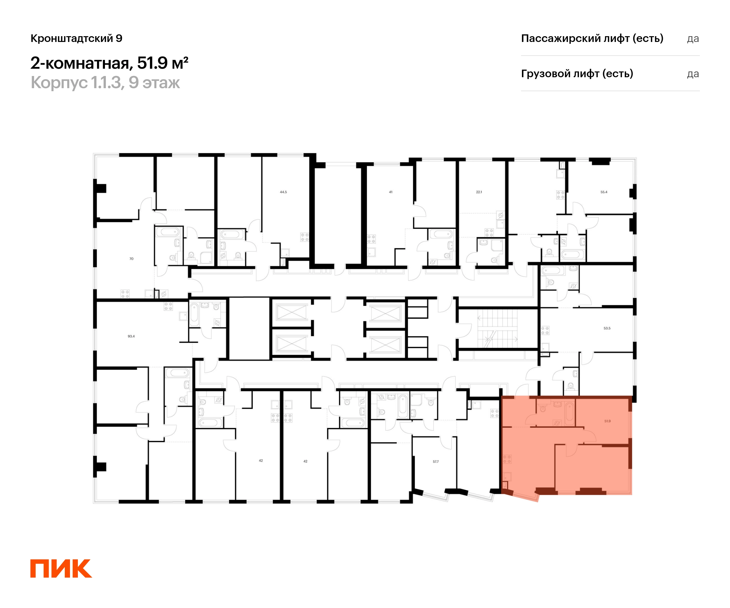 В Головинском районе продаётся 2-комнатная квартира квартира площадью 51.9 на 19 этаже 32 этажного дома (корпус 1.1.3, секция 3) в проекте ПИК «Кронштадтский 9». Удобное расположение 3 минуты пешком до станции метро «Водный стадион». 2 минуты на автомобиле до Ленинградского шоссе, 10 минут до ТТК и 16 минут до МКАД. 4 минуты пешком до ТЦ «Водный». 15 минут пешком до парка у Головинских прудов и 18 минут до парка «Дружба». Особенности проекта «Кронштадтский 9» — квартал «Серии плюс» с уникальной архитектурой. У проекта собственная инфраструктура, а удобные и разнообразные планировки позволят каждому выбрать квартиру для собственного сценария жизни. Преимущества проекта: Отделка: Дизайнерские лобби с зонами ожидания, кондиционерами, быстрыми тихими лифтами. Два детских сада на территории проекта. Дворы-парки с игровыми и спортивными площадками. Магазины, кафе и полезные сервисы на первых этажах домов. Подземный паркинг. АртикулО застройщике