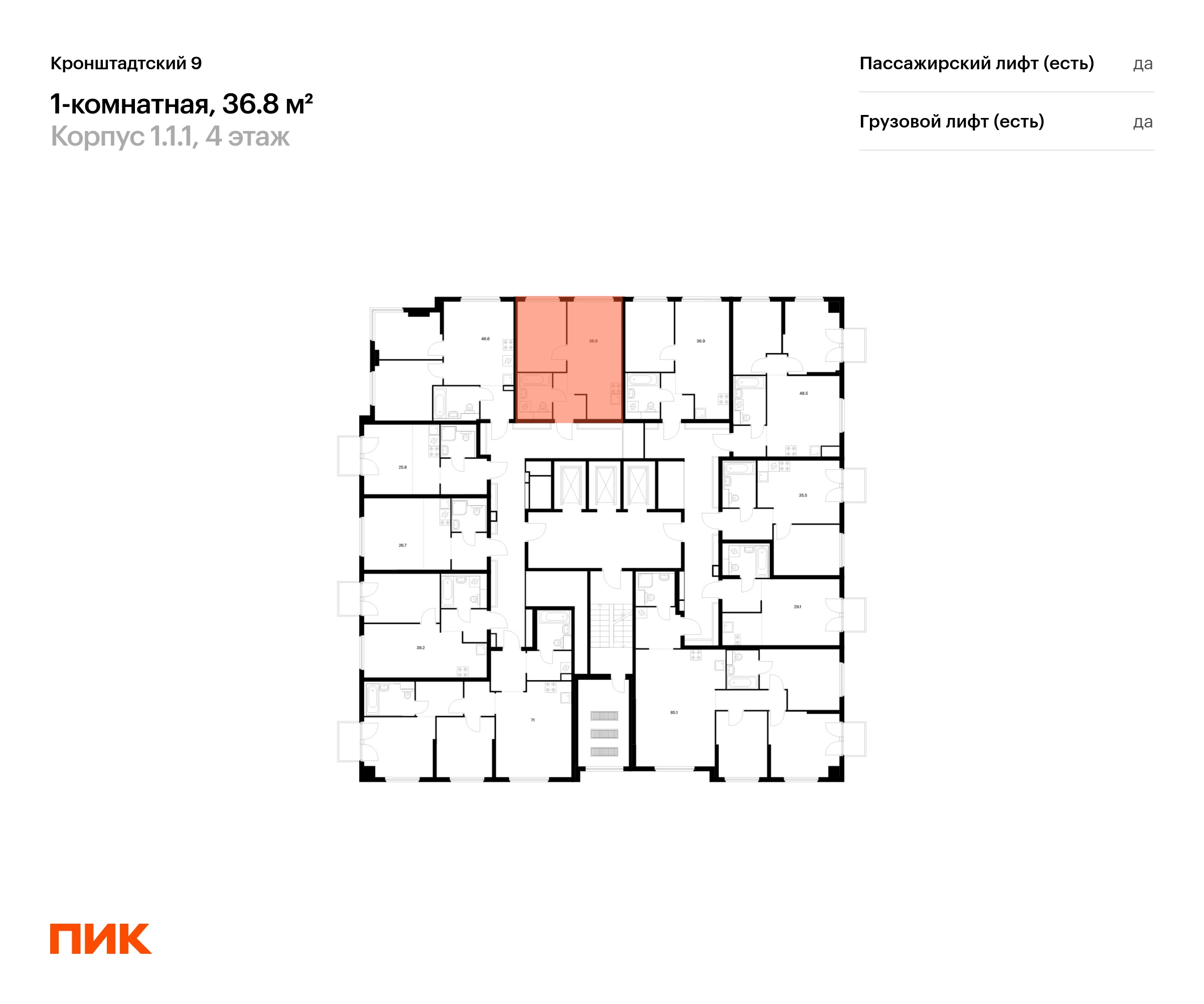 В Головинском районе продаётся 1-комнатная квартира квартира площадью 36.8 на 4 этаже 12 этажного дома (корпус 1.1.1, секция 1) в проекте ПИК «Кронштадтский 9». Удобное расположение 3 минуты пешком до станции метро «Водный стадион». 2 минуты на автомобиле до Ленинградского шоссе, 10 минут до ТТК и 16 минут до МКАД. 4 минуты пешком до ТЦ «Водный». 15 минут пешком до парка у Головинских прудов и 18 минут до парка «Дружба». Особенности проекта «Кронштадтский 9» — квартал «Серии плюс» с уникальной архитектурой. У проекта собственная инфраструктура, а удобные и разнообразные планировки позволят каждому выбрать квартиру для собственного сценария жизни. Преимущества проекта: Отделка: Дизайнерские лобби с зонами ожидания, кондиционерами, быстрыми тихими лифтами. Два детских сада на территории проекта. Дворы-парки с игровыми и спортивными площадками. Магазины, кафе и полезные сервисы на первых этажах домов. Подземный паркинг. АртикулО застройщике
