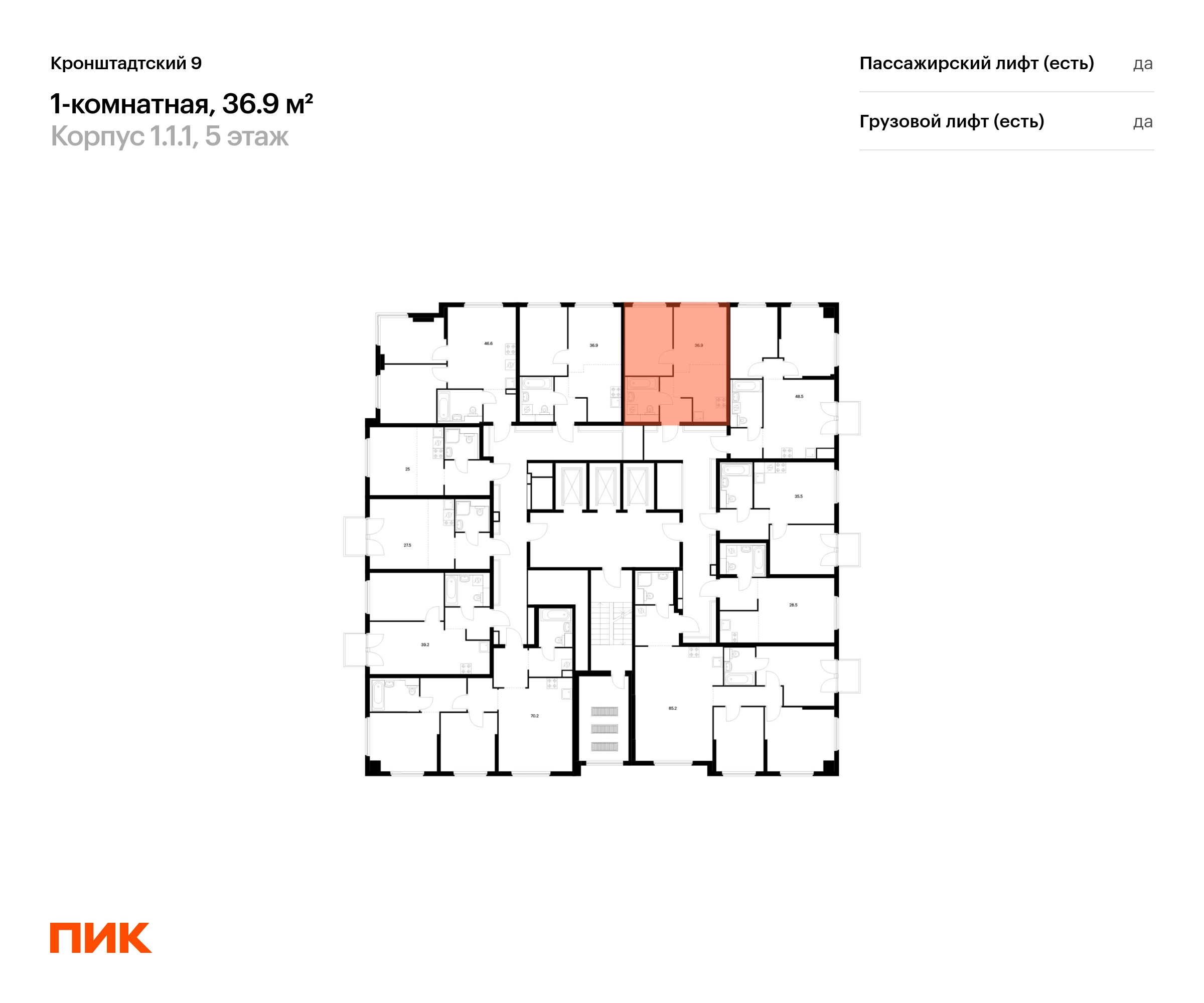 В Головинском районе продаётся 1-комнатная квартира квартира площадью 36.9 на 5 этаже 12 этажного дома (корпус 1.1.1, секция 1) в проекте ПИК «Кронштадтский 9». Удобное расположение 3 минуты пешком до станции метро «Водный стадион». 2 минуты на автомобиле до Ленинградского шоссе, 10 минут до ТТК и 16 минут до МКАД. 4 минуты пешком до ТЦ «Водный». 15 минут пешком до парка у Головинских прудов и 18 минут до парка «Дружба». Особенности проекта «Кронштадтский 9» — квартал «Серии плюс» с уникальной архитектурой. У проекта собственная инфраструктура, а удобные и разнообразные планировки позволят каждому выбрать квартиру для собственного сценария жизни. Преимущества проекта: Отделка: Дизайнерские лобби с зонами ожидания, кондиционерами, быстрыми тихими лифтами. Два детских сада на территории проекта. Дворы-парки с игровыми и спортивными площадками. Магазины, кафе и полезные сервисы на первых этажах домов. Подземный паркинг. АртикулО застройщике
