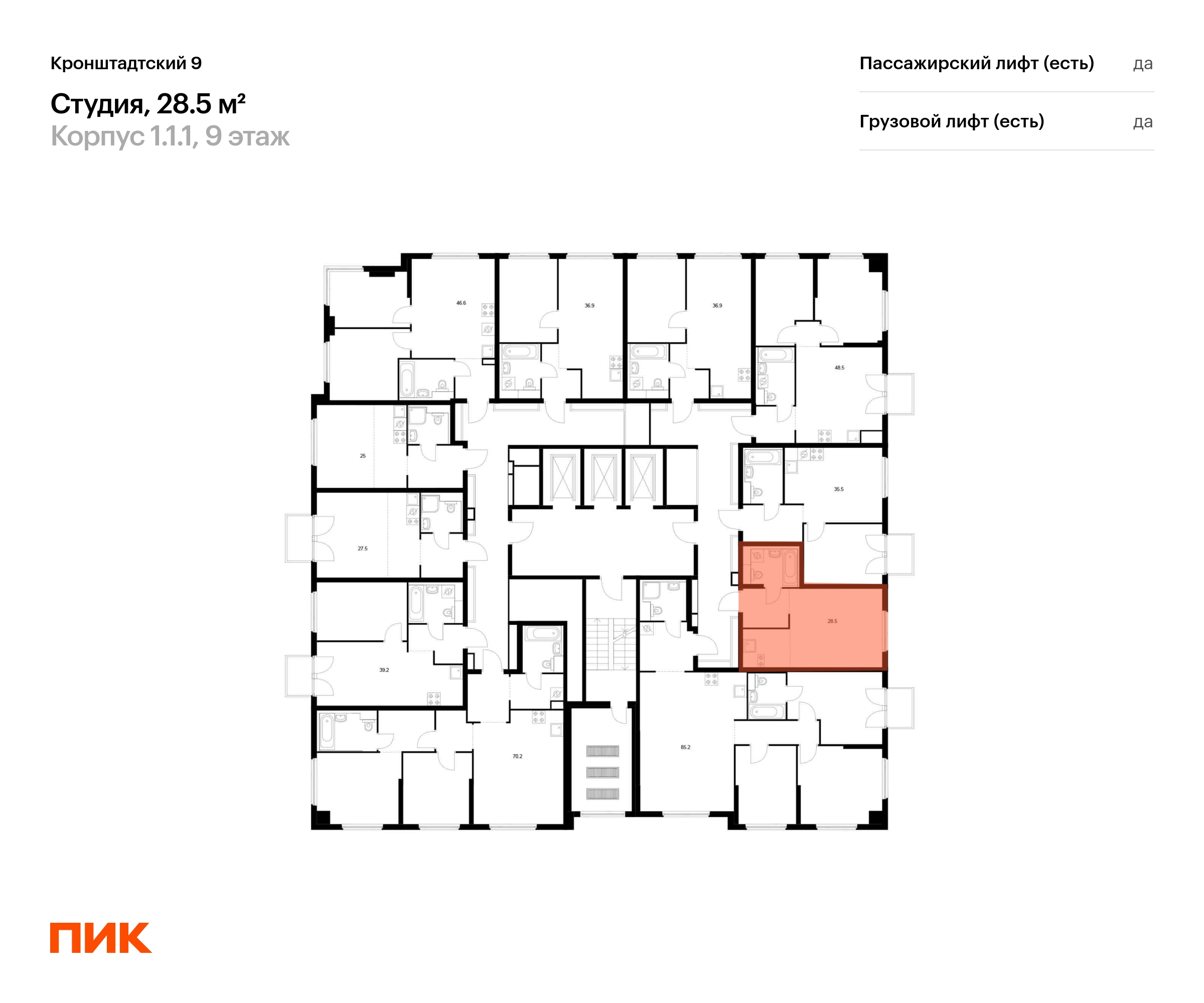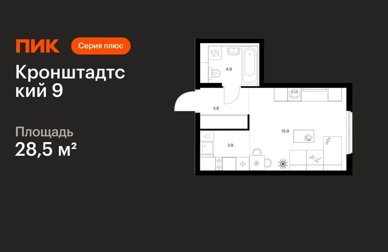 В Головинском районе продаётся студия квартира площадью 28.5 на 9 этаже 12 этажного дома (корпус 1.1.1, секция 1) в проекте ПИК «Кронштадтский 9». Удобное расположение 3 минуты пешком до станции метро «Водный стадион». 2 минуты на автомобиле до Ленинградского шоссе, 10 минут до ТТК и 16 минут до МКАД. 4 минуты пешком до ТЦ «Водный». 15 минут пешком до парка у Головинских прудов и 18 минут до парка «Дружба». Особенности проекта «Кронштадтский 9» — квартал «Серии плюс» с уникальной архитектурой. У проекта собственная инфраструктура, а удобные и разнообразные планировки позволят каждому выбрать квартиру для собственного сценария жизни. Преимущества проекта: Отделка: Дизайнерские лобби с зонами ожидания, кондиционерами, быстрыми тихими лифтами. Два детских сада на территории проекта. Дворы-парки с игровыми и спортивными площадками. Магазины, кафе и полезные сервисы на первых этажах домов. Подземный паркинг. АртикулО застройщике