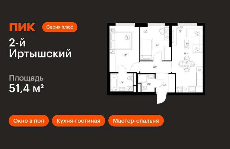 В районе Гольяново продаётся 2-комнатная квартира квартира площадью 51.4 кв. м на 26 этаже 43 этажного дома (корпус, секция) в проекте ПИК «2-й Иртышский». Удобное расположение 25 минут пешком до станции метро «Черкизовская» 14 минут на автомобиле до МКАД и 20 минут до ТТК 12 минут на машине до ТРЦ «Щёлковский» 15 минут пешком до «Сиреневого сада» и 6 минут на автомобиле до «Лосиного острова» и Гольяновского пруда Особенности проекта «2-й Иртышский» — современный проект с корпусами «Серии плюс» в районе, где создана качественная среда для полноценной жизни, работы и отдыха. А удобные и разнообразные планировки позволят каждому выбрать квартиру для собственного сценария жизни. Преимущества проекта: Отделка:Готовая Особенности планировки: Мастер-спальня, Кухня-гостиная, Два и более санузла, Окна в пол, Умная планировка Лобби с дизайнерской отделкой, зонами ожидания и колясочными. Детский сад для 350 малышей и школа на 950 мест. Пешеходный бульвар для неспешных прогулок и отдыха. Подземный паркинг. АртикулО застройщике
