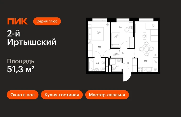 В районе Гольяново продаётся 2-комнатная квартира квартира площадью 51.3 кв. м на 2 этаже 43 этажного дома (корпус, секция) в проекте ПИК «2-й Иртышский». Удобное расположение 25 минут пешком до станции метро «Черкизовская» 14 минут на автомобиле до МКАД и 20 минут до ТТК 12 минут на машине до ТРЦ «Щёлковский» 15 минут пешком до «Сиреневого сада» и 6 минут на автомобиле до «Лосиного острова» и Гольяновского пруда Особенности проекта «2-й Иртышский» — современный проект с корпусами «Серии плюс» в районе, где создана качественная среда для полноценной жизни, работы и отдыха. А удобные и разнообразные планировки позволят каждому выбрать квартиру для собственного сценария жизни. Преимущества проекта: Отделка:Готовая Особенности планировки: Мастер-спальня, Кухня-гостиная, Два и более санузла, Окна в пол, Умная планировка Лобби с дизайнерской отделкой, зонами ожидания и колясочными. Детский сад для 350 малышей и школа на 950 мест. Пешеходный бульвар для неспешных прогулок и отдыха. Подземный паркинг. АртикулО застройщике