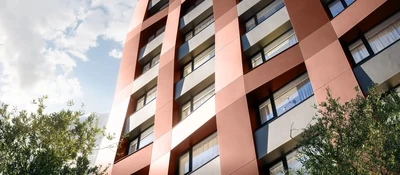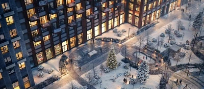 Квартал от мастерской M.A.M. органично дополняет городской ландшафт. Разновысотные корпуса в минималистичном стиле сочетают мягкие пластичные линии и строгие геометрические формы. Цветовая гамма фасадов — контраст терракотового и молочно-серого оттенков, которые создают атмосферу тепла и уюта.