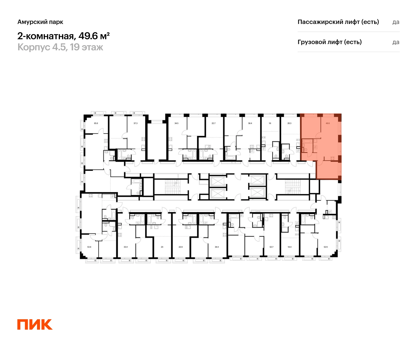 В районе Гольяново продаётся 2-комнатная квартира квартира площадью49.6 на 19 этаже 27 этажного дома (4.5 корпус, 6 секция) в проекте ПИК «Амурский парк». Удобное расположение 10 минут пешком до станции метро «Черкизовская» и МЦК «Локомотив». 15 минут на автомобиле до ТТК или МКАД, 17 минут до Садового кольца. 8 минут пешком до Сиреневого сада и 20 минут до Детского Черкизовского парка. 10 минут на автомобиле до парка «Лосиный остров». Особенности проекта «Амурский парк» — квартал с видом на Измайловский парк на востоке Москвы. Проект выглядит ярко и современно благодаря уникальным фасадам зданий. А удобные и разнообразные планировки позволят каждому выбрать квартиру для собственного сценария жизни. Преимущества проекта: Отделка: Дизайнерские лобби с быстрыми и тихими лифтами, зонами ожидания и колясочными. Детский сад с бассейном для 250 малышей на территории проекта. Дворы-парки с местами для отдыха, игровыми и спортивными площадками. На первых этажах домов — магазины, кафе и полезные сервисы. Подземный паркинг. Артикул _О застройщике