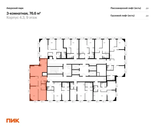 В районе Гольяново продаётся 3-комнатная квартира квартира площадью76.6 на 9 этаже 27 этажного дома (4.3 корпус, 3 секция) в проекте ПИК «Амурский парк». Удобное расположение 10 минут пешком до станции метро «Черкизовская» и МЦК «Локомотив». 15 минут на автомобиле до ТТК или МКАД, 17 минут до Садового кольца. 8 минут пешком до Сиреневого сада и 20 минут до Детского Черкизовского парка. 10 минут на автомобиле до парка «Лосиный остров». Особенности проекта «Амурский парк» — квартал с видом на Измайловский парк на востоке Москвы. Проект выглядит ярко и современно благодаря уникальным фасадам зданий. А удобные и разнообразные планировки позволят каждому выбрать квартиру для собственного сценария жизни. Преимущества проекта: Отделка: Готовая Особенности планировки: Кухня-ниша, Кухня-гостиная, Два и более санузла Дизайнерские лобби с быстрыми и тихими лифтами, зонами ожидания и колясочными. Детский сад с бассейном для 250 малышей на территории проекта. Дворы-парки с местами для отдыха, игровыми и спортивными площадками. На первых этажах домов — магазины, кафе и полезные сервисы. Подземный паркинг. Артикул _О застройщике