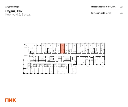 В районе Гольяново продаётся студия квартира площадью19 на 8 этаже 27 этажного дома (4.5 корпус, 6 секция) в проекте ПИК «Амурский парк». Удобное расположение 10 минут пешком до станции метро «Черкизовская» и МЦК «Локомотив». 15 минут на автомобиле до ТТК или МКАД, 17 минут до Садового кольца. 8 минут пешком до Сиреневого сада и 20 минут до Детского Черкизовского парка. 10 минут на автомобиле до парка «Лосиный остров». Особенности проекта «Амурский парк» — квартал с видом на Измайловский парк на востоке Москвы. Проект выглядит ярко и современно благодаря уникальным фасадам зданий. А удобные и разнообразные планировки позволят каждому выбрать квартиру для собственного сценария жизни. Преимущества проекта: Отделка: Готовая Дизайнерские лобби с быстрыми и тихими лифтами, зонами ожидания и колясочными. Детский сад с бассейном для 250 малышей на территории проекта. Дворы-парки с местами для отдыха, игровыми и спортивными площадками. На первых этажах домов — магазины, кафе и полезные сервисы. Подземный паркинг. Артикул _О застройщике