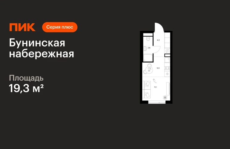 В Новой Москве продаётся студия квартира площадью 19.3 на 8 этаже 16 этажного дома (корпус 2.6/1.5, секция 5) в проекте ПИК «Бунинская набережная». Удобное расположение 18 минут пешком до станции метро «Потапово» и 12 минут на машине до метро «Бунинская аллея». 9 минут на машине до Солнцево-Бутово-Варшавского шоссе и 17 минут до МКАД. 8 минут на автомобиле до гипермаркета «Глобус». 15 минут на автомобиле до живописного Бутовского лесопарка и заказника «Южное Бутово». Особенности проекта «Бунинская набережная» — камерный квартал «Серии плюс» на берегу Ивановского пруда. В шаговой доступности вся нужная инфраструктура: детские сады, школы, поликлиники, игровая площадка ПлейХаб «Пирамиды» и скейт-парк. Удобные и разнообразные планировки позволят каждому выбрать квартиру для собственного сценария жизни. Преимущества проекта: Отделка: Просторные и светлые лобби с быстрыми тихими лифтами. Дворы-парки с местами для отдыха, детскими и спортивными площадками. Пешеходный бульвар и благоустроенная набережная. Магазины, кафе и полезные сервисы на первых этажах домов. Подземный паркинг. АртикулО застройщике