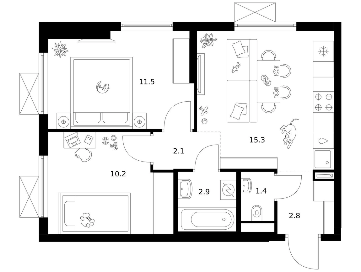 Продаётся 2-комн.квартира площадью 46.20 кв.м на 10 этаже 15 этажного дома (Корпус 57.2, секция 2) проекта ПИК Саларьево парк. Светлый просторный подъезд на уровне земли, функциональная планировка, большие окна, с отделкой. Жилой район «Саларьево парк» расположен в Новой Москве, в четырёх километрах от МКАД по Киевскому шоссе. Две станции метро: «Саларьево» и «Филатов луг», — находятся в пешей доступности от проекта. Дойти до них можно за 5–10 минут. В квартале уже создана качественная среда, где есть абсолютно всё для полноценной жизни, работы и отдыха. «Саларьево парк» — не просто квартал, а полноценный жилой район, который отличается разноплановой архитектурой. Над концепцией квартала работали несколько ведущих архитектурных бюро, которые стремились добиться разнообразия в фасадных решениях. Ярким примером такого подхода станут корпуса 82 и 83, которые относятся к «Серии плюс». Новый корпус 83 был создан по принципам южной архитектуры: расслабленный и лаконичный силуэт зданий, привлекающий к себе внимание. Архитектурная изюминка 83-го корпуса — террасы и фигурные балконы. Вместе с окнами и другими акцентными элементами они создают уникальный облик здания, отсылая нас к изысканной южной архитектуре. Все корпуса в квартале гармонично сочетаются, образуя единую городскую среду. Здесь приятно гулять и проводить время на улице всей семьёй. В «Саларьево парке» создана уникальная образовательная среда, включающая в себя шесть школ, рассчитанных на 6 250 учеников. Четыре из них уже открыты, их посещает 2 300 детей. Также на территории «Саларьево парка» находится 12 детских садов, один из которых с бассейном. Сейчас уже открыты 8 садов. В «Саларьево парке» открыта уникальная игровая площадка — ПлейХаб «Оригами». Здесь есть ручей, горка-труба и рельефные холмы. Взрослые смогут отдохнуть в уютном кафе, пока дети играют. Также на территории проекта есть СпортХаб — большая спортивная зона, разделённая по интересам и возрастам. Здесь можно заниматься разными видами спорта: футболом, баскетболом, волейболом и стритболом. Зимой центральную часть площадки превращают в каток. Во дворах-парках жилого квартала есть места для отдыха, детские и спортивные площадки. На первых этажах домов расположены магазины, кафе и полезные сервисы. Также вблизи проекта есть несколько масштабных торговых центров. До ТЦ «Саларис» пять минут пешком, до «Рио» и «Лемана Про» — пять минут на автомобиле. Артикул - 1019178О застройщике