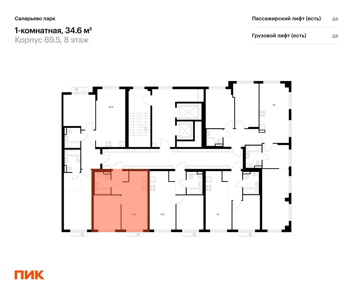 Продаётся 1-комн.квартира площадью 34.60 кв.м на 8 этаже 14 этажного дома (Корпус 69.5, секция 5) проекта ПИК Саларьево парк. Светлый просторный подъезд на уровне земли, функциональная планировка, большие окна, с отделкой. Жилой район «Саларьево парк» расположен в Новой Москве, в четырёх километрах от МКАД по Киевскому шоссе. Две станции метро: «Саларьево» и «Филатов луг», — находятся в пешей доступности от проекта. Дойти до них можно за 5–10 минут. В квартале уже создана качественная среда, где есть абсолютно всё для полноценной жизни, работы и отдыха. «Саларьево парк» — не просто квартал, а полноценный жилой район, который отличается разноплановой архитектурой. Над концепцией квартала работали несколько ведущих архитектурных бюро, которые стремились добиться разнообразия в фасадных решениях. Ярким примером такого подхода станут корпуса 82 и 83, которые относятся к «Серии плюс». Новый корпус 83 был создан по принципам южной архитектуры: расслабленный и лаконичный силуэт зданий, привлекающий к себе внимание. Архитектурная изюминка 83-го корпуса — террасы и фигурные балконы. Вместе с окнами и другими акцентными элементами они создают уникальный облик здания, отсылая нас к изысканной южной архитектуре. Все корпуса в квартале гармонично сочетаются, образуя единую городскую среду. Здесь приятно гулять и проводить время на улице всей семьёй. В «Саларьево парке» создана уникальная образовательная среда, включающая в себя шесть школ, рассчитанных на 6 250 учеников. Четыре из них уже открыты, их посещает 2 300 детей. Также на территории «Саларьево парка» находится 12 детских садов, один из которых с бассейном. Сейчас уже открыты 8 садов. В «Саларьево парке» открыта уникальная игровая площадка — ПлейХаб «Оригами». Здесь есть ручей, горка-труба и рельефные холмы. Взрослые смогут отдохнуть в уютном кафе, пока дети играют. Также на территории проекта есть СпортХаб — большая спортивная зона, разделённая по интересам и возрастам. Здесь можно заниматься разными видами спорта: футболом, баскетболом, волейболом и стритболом. Зимой центральную часть площадки превращают в каток. Во дворах-парках жилого квартала есть места для отдыха, детские и спортивные площадки. На первых этажах домов расположены магазины, кафе и полезные сервисы. Также вблизи проекта есть несколько масштабных торговых центров. До ТЦ «Саларис» пять минут пешком, до «Рио» и «Лемана Про» — пять минут на автомобиле. Артикул - 1023981О застройщике