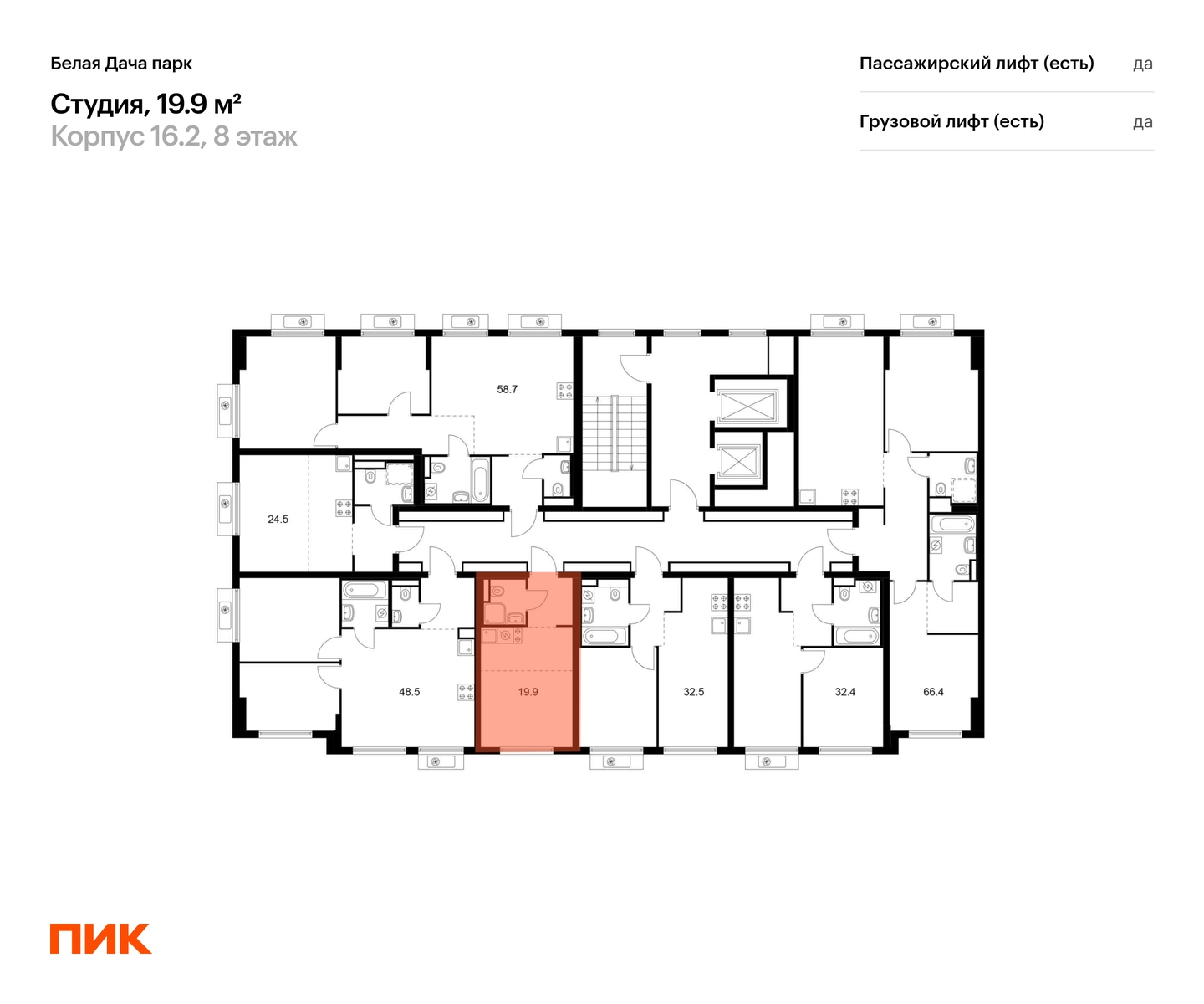 В городе Котельники Московской области продаётся студия квартира площадью19.9 на 8 этаже 11 этажного дома (корпус 16.2, секция 8) в проекте ПИК «Белая Дача парк». Удобное расположение 7 минут на автомобиле до станции метро «Котельники» и 15 минут до МЦД-3 «Люберцы». 7 минут на автомобиле до МКАД. 3 минуты пешком до ТЦ «Outlet Village Белая дача» и 5 минут на автомобиле до ТЦ «МЕГА Белая дача». 9 минут на автомобиле до Люберецких карьеров. Особенности проекта «Белая Дача парк» — масштабный квартал с собственной инфраструктурой в развитом районе Московской области. А удобные и разнообразные планировки позволят каждому выбрать квартиру под собственный сценарий жизни. Преимущества проекта: Отделка: Готовая Две школы, пять детских садов и поликлиника на территории проекта. Пешеходный бульвар для прогулок и отдыха. PlayHub «Ферма» — масштабная игровая площадка для детей. Дворы-парки с местами для отдыха, детскими и спортивными площадками. Магазины, кафе и полезные сервисы на первых этажах домов. АртикулО застройщике