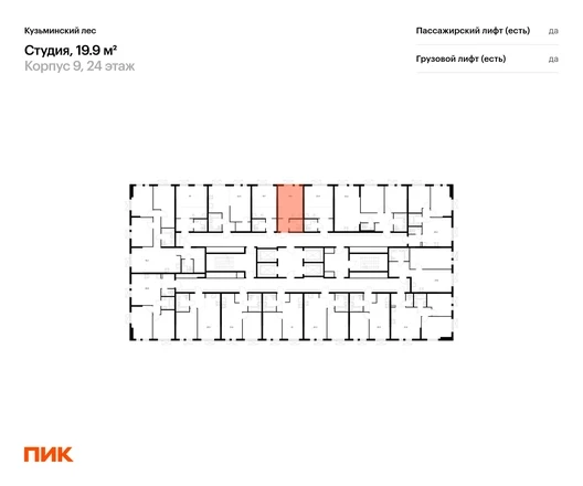 Продаётся квартира-студия площадью 19.90 кв.м на 24 этаже 25 этажного дома (Корпус 9, секция 1) проекта ПИК Кузьминский лес. Светлый просторный подъезд на уровне земли, функциональная планировка, большие окна, с отделкой. Жилой квартал «Кузьминский лес» находится в Московской области, в городе Котельники. Отсюда за 18 минут можно дойти до метро «Котельники», а за 5 минут — доехать на машине до МКАД. В проекте — жилые дома с уютными дворами, школа, детский сад, подземные и гостевые паркинги. Вокруг — развитый район с детскими садами, школами и поликлиниками. Рядом есть стадион, «МЕГА Белая Дача» и гипермаркеты Selgros, Castorama и Real. Отдохнуть от городской жизни можно в Кузьминском парке и усадьбе «Белая Дача», которые совсем недалеко от «Кузьминского леса». Артикул - 931452О застройщике