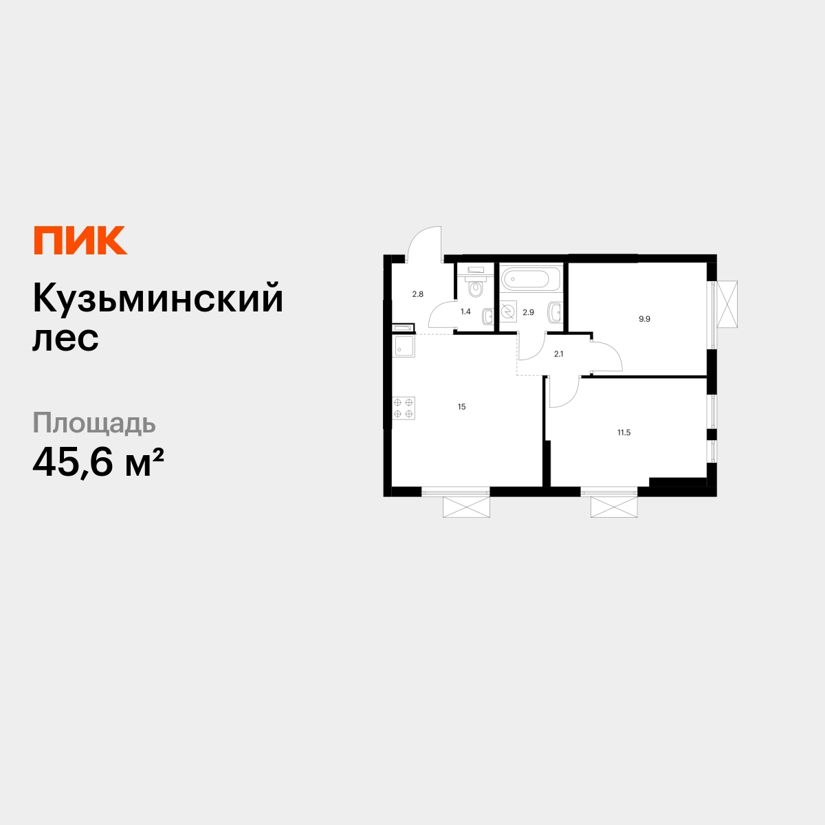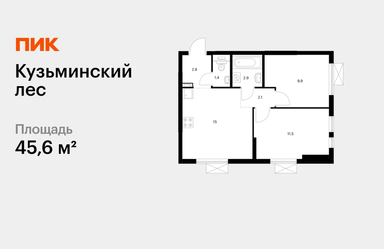 Продаётся 2-комн.квартира площадью 45.60 кв.м на 15 этаже 25 этажного дома (Корпус 9, секция 1) проекта ПИК Кузьминский лес. Светлый просторный подъезд на уровне земли, функциональная планировка, большие окна, с отделкой. Жилой квартал «Кузьминский лес» находится в Московской области, в городе Котельники. Отсюда за 18 минут можно дойти до метро «Котельники», а за 5 минут — доехать на машине до МКАД. В проекте — жилые дома с уютными дворами, школа, детский сад, подземные и гостевые паркинги. Вокруг — развитый район с детскими садами, школами и поликлиниками. Рядом есть стадион, «МЕГА Белая Дача» и гипермаркет Касторама. Отдохнуть от городской жизни можно в Кузьминском парке и усадьбе «Белая Дача», которые совсем недалеко от «Кузьминского леса». Артикул - 582188О застройщике