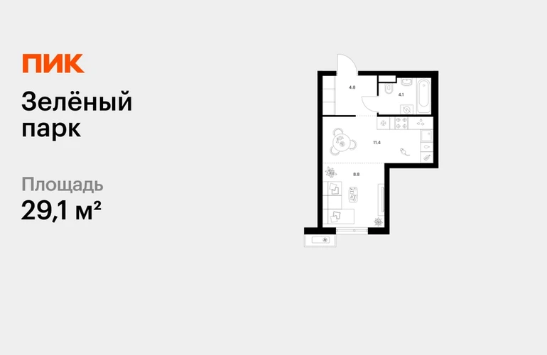 В «Зеленограде» продаётся студия квартира площадью 29.1 на 11 этаже 12 этажного дома (корпус, секция) в проекте ПИК «Зелёный парк». Удобное расположение: 20 минут пешком до МЦД-3 «Зеленоград-Крюково». 3 минуты на автомобиле до Кутузовского шоссе, 15 минут до Пятницкого шоссе. 2 минуты пешком до велодрома и лыже-роллерной трассы. 12 минут пешком до Каменского пруда, 7 минут на автомобиле до парка «Зелёный бор». Особенности проекта Масштабный квартал с оригинальной архитектурой в экологичном районе Зеленограда. Проект выглядит современно благодаря уникальным фасадам зданий, которые разработали ведущие российские архитектурные бюро. А удобные и разнообразные планировки позволят каждому выбрать квартиру для собственного сценария жизни. Преимущества проекта: Отделка: Светлые просторные лобби с дизайнерской отделкой и бесшумными лифтами. Два детских сада для 250 малышей и две школы для 1100 учеников. Дворы-парки с игровыми и спортивными площадками, местами для отдыха и кофейнями. Пешеходный бульвар для неспешных прогулок и отдыха. Наземные и гостевые паркинги. АртикулО застройщике
