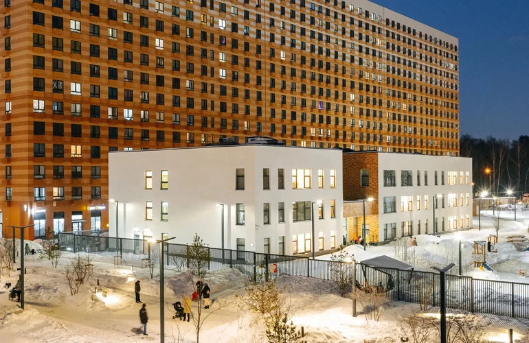 Во дворах — зелёные парки с местами отдыха, детскими и спортивными площадками. На первых этажах домов работают магазины, кафе и полезные сервисы. А для владельцев автомобилей предусмотрены многоуровневый и подземный паркинги.