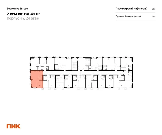 В Ленинский район Московской области продаётся 2-комнатная квартира квартира площадью 46 на 24 этаже 25 этажного дома (корпус 47, секция 3) в проекте ПИК «Восточное Бутово». Удобное расположение 20 минут на автомобиле до станций метро и МЦД «Бульвар Дмитрия Донского». 10 минут на машине до МКАД. 5 минут пешком до Бутовского лесопарка. 20 минут на автомобиле до ТЦ «Твой Дом». Особенности проекта «Восточное Бутово» — масштабный квартал с готовой инфраструктурой в зелёном районе в 5 км от МКАД. В проекте есть вся необходимая инфраструктура. А удобные и разнообразные планировки позволят каждому выбрать квартиру для собственного сценария жизни. Преимущества проекта: Отделка: Десять детских садов, четыре школы, две поликлиники на территории проекта. Дворы-парки с местами для отдыха, детскими и спортивными площадками. Два пешеходных бульвара для прогулок и отдыха. Магазины, кафе и полезные сервисы на первых этажах домов. Многоуровневый и подземный паркинги. АртикулО застройщике
