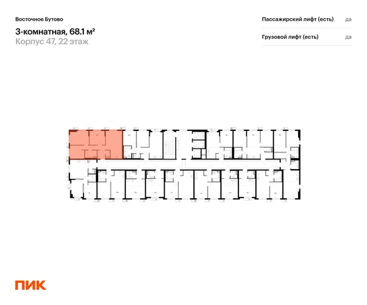 В Ленинский район Московской области продаётся 3-комнатная квартира квартира площадью 68.1 на 22 этаже 25 этажного дома (корпус 47, секция 3) в проекте ПИК «Восточное Бутово». Удобное расположение 20 минут на автомобиле до станций метро и МЦД «Бульвар Дмитрия Донского». 10 минут на машине до МКАД. 5 минут пешком до Бутовского лесопарка. 20 минут на автомобиле до ТЦ «Твой Дом». Особенности проекта «Восточное Бутово» — масштабный квартал с готовой инфраструктурой в зелёном районе в 5 км от МКАД. В проекте есть вся необходимая инфраструктура. А удобные и разнообразные планировки позволят каждому выбрать квартиру для собственного сценария жизни. Преимущества проекта: Отделка: Предчистовая Особенности планировки: Два и более санузла Десять детских садов, четыре школы, две поликлиники на территории проекта. Дворы-парки с местами для отдыха, детскими и спортивными площадками. Два пешеходных бульвара для прогулок и отдыха. Магазины, кафе и полезные сервисы на первых этажах домов. Многоуровневый и подземный паркинги. АртикулО застройщике