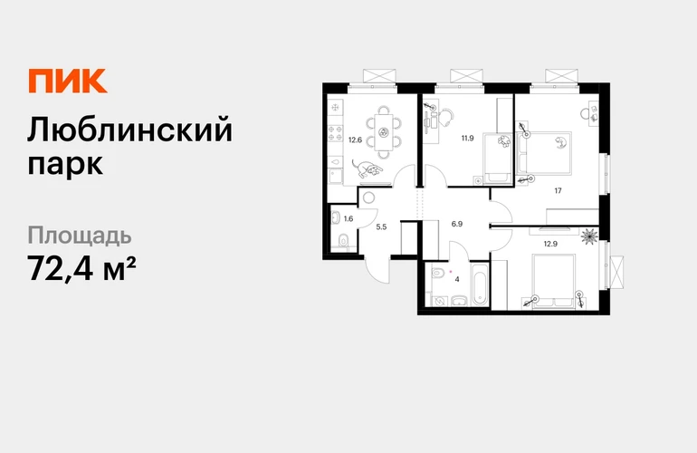 В районе Люблино продаётся 3-комнатная квартира квартира площадью 72.4 на 5 этаже 25 этажного дома (корпус 18-20, секция 2) в проекте ПИК «Люблинский парк». Удобное расположение 15 минут пешком до станции метро «Братиславская» и МЦД «Перерва». 11 минут на автомобиле до ЮВХ, 15 минут до МКАД и 19 минут до ТТК. 20 минут пешком до ТЦ «Люблино Молл». 15 минут пешком до БЛК «Марьино» и 15 минут на автомобиле до Люблинского парка. Особенности проекта «Люблинский парк» — масштабный квартал с собственной инфраструктурой на юго-востоке Москвы. В проекте будет вся необходимая инфраструктура. А удобные и разнообразные планировки позволят каждому выбрать квартиру для собственного сценария жизни. Преимущества проекта: Отделка: Три школы, семь детских садов и поликлиника на территории проекта. Дворы-парки с местами для отдыха, детскими и спортивными площадками. Пешеходный бульвар для прогулок и отдыха. ПлейХаб «Остров» — большая игровая площадка для детей разного возраста. На первых этажах домов — магазины, кафе и полезные сервисы. Подземный паркинг. АртикулО застройщике