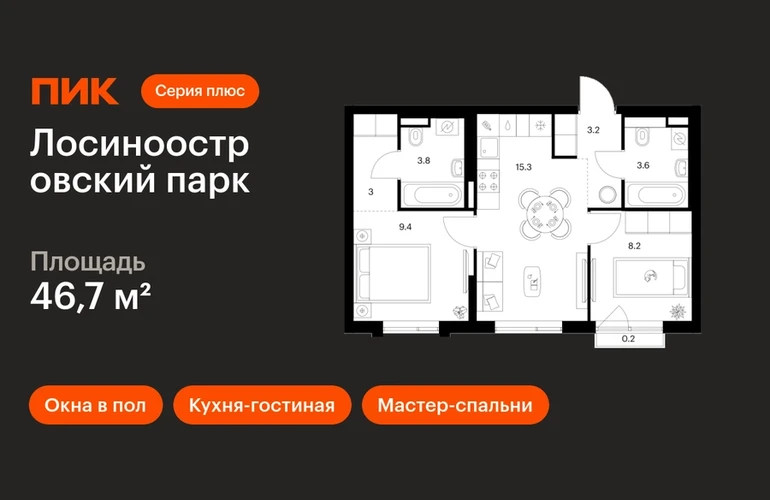 В районе Метрогородок продаётся 2-комнатная квартира квартира площадью 46.7 на 16 этаже 17 этажного дома (корпус, секция) в проекте ПИК «Лосиноостровский парк». Удобное расположение 12 минут пешком до станции метро и МЦК «Бульвар Рокоссовского». 3 минуты на автомобиле до Северо-Восточной хорды и 15 минут до ТТК. 6 минут пешком до парка «Лосиный остров». Особенности проекта «Лосиноостровский парк» — квартал с корпусами «Серии плюс» в зелёном районе, где создана качественная среда для полноценной жизни, работы и отдыха. А удобные и разнообразные планировки позволят каждому выбрать квартиру для собственного сценария жизни. Преимущества проекта: Отделка: Без отделки Особенности планировки: Гардеробная, Мастер-спальня, Разнесенные спальни, Кухня-гостиная, Два и более санузла, Французский балкон, Окна в пол, Внутрипольные конвекторы, Умная планировка Лобби с дизайнерской отделкой, зонами ожидания и колясочными. Школа на 550 мест и детский сад на 250 мест. Пешеходный бульвар для неспешных прогулок и отдыха. Многоуровневый паркинг. АртикулО застройщике