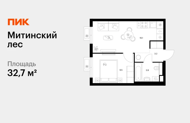 В районе Митино продаётся 1-комнатная квартира квартира площадью 32.7 на 27 этаже 27 этажного дома (корпус 14, секция 4) в проекте ПИК «Митинский лес». Удобное расположение 20 минут пешком до станции метро «Пятницкое шоссе». 8 минут на автомобиле до Пятницкого шоссе и 30 минут до центра Москвы. 11 минут на машине до гипермаркета «Глобус» и крупных фитнес-клубов. 3 минуты пешком до Митинского парка. Особенности проекта «Митинский лес» — квартал в зелёном районе Митино в окружении парков и рек. В проекте будет вся необходимая инфраструктура. А удобные и разнообразные планировки позволят каждому выбрать квартиру для собственного сценария жизни. Преимущества проекта: Отделка: Два детских сада на 150 и 235 мест и школа для 1100 учеников на территории проекта. Дворы-парки с местами для отдыха, детскими и спортивными площадками. Пешеходный бульвар для прогулок и отдыха. Магазины, кафе и полезные сервисы на первых этажах домов. Подземные паркинги. АртикулО застройщике