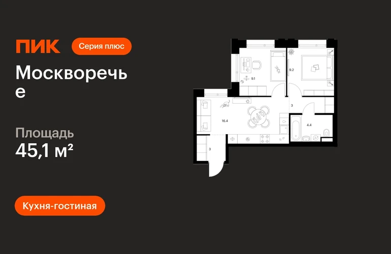 В районе Москворечье-Сабурово продаётся 2-комнатная квартира квартира площадью 45.1 кв. м на 19 этаже 29 этажного дома (корпус, секция) в проекте ПИК «Москворечье». Удобное расположение 18 минут пешком до станции метро «Каширская» и 19 минут до метро «Чертановская». 1 минута на автомобиле до ЮВХ, 13 минут до ТТК и 15 минут до МКАД. 15 минут пешком до ТРК «Москворечье» и 27 минут до ТДЦ «Варшавский». 16 минут пешком до «Долины реки Чертановки» и 30 минут до парка «Коломенское». Особенности проекта «Москворечье» — масштабный проект с авторской архитектурой в Москворечье-Сабурово. Здесь создана качественная среда для полноценной жизни, работы и отдыха. А удобные и разнообразные планировки позволят каждому выбрать квартиру для собственного сценария жизни. Преимущества проекта: Отделка: Готовая Особенности планировки: Кухня-гостиная Дизайнерские лобби с быстрыми и тихими лифтами, зонами ожидания и колясочными. Два детсада на 350 мест каждый, школа на 1350 мест и поликлиника на территории проекта. Пешеходный бульвар с местами для отдыха, игровыми и спортивными площадками. Первые этажи с пешеходными галереями, магазинами, кафе и полезными сервисами. Подземный паркинг для автомобилей и мотоциклов. Артикул _О застройщике