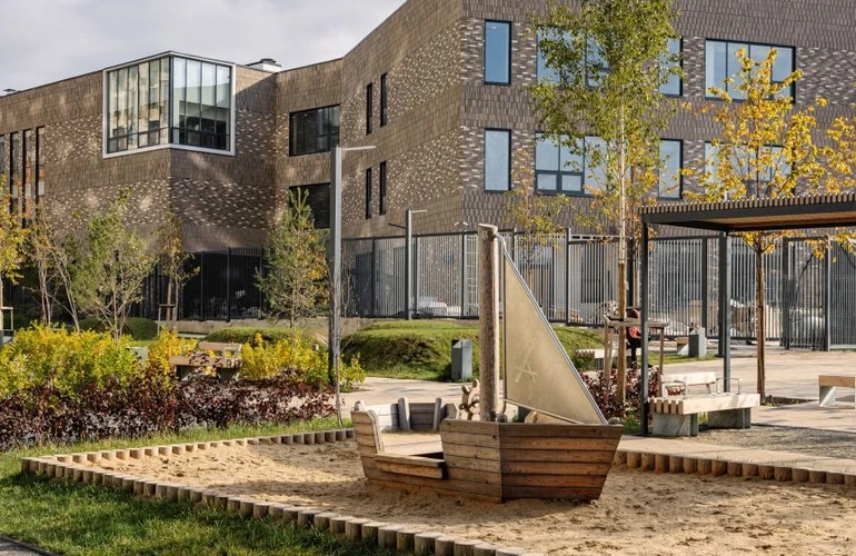 Проект включает шесть корпусов, детский сад, начальную школу и несколько паркингов. В тихих зелёных дворах-парках можно будет отдохнуть от городской суеты. На первых этажах дома раскроются кафе и мини-маркеты. За большими покупками обитателям также не нужно далеко ездить: одна из особенностей проекта — собственный торговый центр. В проекте предусмотрена зона для электросамокатов — с 7 утра до полуночи при въезде на территорию квартала скорость электросамокатов автоматически снижается до 15 км/ч.