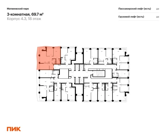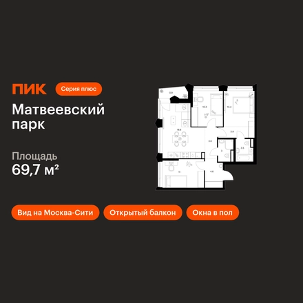В районе Очаково-Матвеевское продаётся 3-комнатная квартира квартира площадью 69.7 на 18 этаже 31 этажного дома (корпус, секция) в проекте ПИК «Матвеевский парк». Удобное расположение 3 минуты пешком до станции метро «Аминьевская». 20 минут пешком до МЦД-4 «Очаково». 8 минут на автомобиле до Кутузовского проспекта и 12 минут до ТТК. 2 минуты пешком до «Долины реки Навершки», 6 минут на автомобиле до парка «Олимпийская деревня» и 10 минут до Воробьёвых гор. Особенности проекта «Матвеевский парк» — проект «Серии плюс», где создана качественная среда для полноценной жизни, работы и отдыха. А удобные и разнообразные планировки позволят каждому выбрать квартиру для собственного сценария жизни. Преимущества проекта: Отделка: Готовая Особенности планировки: Гардеробная, Мастер-спальня, Разнесенные спальни, Кухня-гостиная, Два и более санузла, Открытый балкон, Окна в пол, Вид на Москва-Сити, Внутрипольные конвекторы, Умная планировка Дизайнерские лобби с зонами ожидания, гостевым санузлом и колясочными. Пять школ, шесть детских садов, поликлиника и многофункциональный спортивный комплекс на территории «Матвеевского кластера». SportHub Extreme — пространство площадью 3 500 м² для любителей экстремальных видов спорта. Пешеходный бульвар с сухим фонтаном с подсветкой, игровыми и спортивными площадками. Современный комьюнити-центр ОМА. АртикулО застройщике