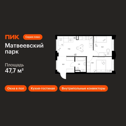 В районе Очаково-Матвеевское продаётся 2-комнатная квартира квартира площадью 47.7 на 2 этаже 13 этажного дома (корпус, секция) в проекте ПИК «Матвеевский парк». Удобное расположение 3 минуты пешком до станции метро «Аминьевская». 20 минут пешком до МЦД-4 «Очаково». 8 минут на автомобиле до Кутузовского проспекта и 12 минут до ТТК. 2 минуты пешком до «Долины реки Навершки», 6 минут на автомобиле до парка «Олимпийская деревня» и 10 минут до Воробьёвых гор. Особенности проекта «Матвеевский парк» — проект «Серии плюс», где создана качественная среда для полноценной жизни, работы и отдыха. А удобные и разнообразные планировки позволят каждому выбрать квартиру для собственного сценария жизни. Преимущества проекта: Отделка: Готовая Особенности планировки: Кухня-гостиная, Окна в пол, Внутрипольные конвекторы Дизайнерские лобби с зонами ожидания, гостевым санузлом и колясочными. Пять школ, шесть детских садов, поликлиника и многофункциональный спортивный комплекс на территории «Матвеевского кластера». SportHub Extreme — пространство площадью 3 500 м² для любителей экстремальных видов спорта. Пешеходный бульвар с сухим фонтаном с подсветкой, игровыми и спортивными площадками. Современный комьюнити-центр ОМА. АртикулО застройщике