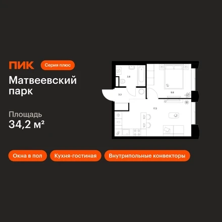 В районе Очаково-Матвеевское продаётся 1-комнатная квартира квартира площадью 34.2 на 3 этаже 13 этажного дома (корпус, секция) в проекте ПИК «Матвеевский парк». Удобное расположение 3 минуты пешком до станции метро «Аминьевская». 20 минут пешком до МЦД-4 «Очаково». 8 минут на автомобиле до Кутузовского проспекта и 12 минут до ТТК. 2 минуты пешком до «Долины реки Навершки», 6 минут на автомобиле до парка «Олимпийская деревня» и 10 минут до Воробьёвых гор. Особенности проекта «Матвеевский парк» — проект «Серии плюс», где создана качественная среда для полноценной жизни, работы и отдыха. А удобные и разнообразные планировки позволят каждому выбрать квартиру для собственного сценария жизни. Преимущества проекта: Отделка: Готовая Особенности планировки: Кухня-гостиная, Окна в пол, Внутрипольные конвекторы Дизайнерские лобби с зонами ожидания, гостевым санузлом и колясочными. Пять школ, шесть детских садов, поликлиника и многофункциональный спортивный комплекс на территории «Матвеевского кластера». SportHub Extreme — пространство площадью 3 500 м² для любителей экстремальных видов спорта. Пешеходный бульвар с сухим фонтаном с подсветкой, игровыми и спортивными площадками. Современный комьюнити-центр ОМА. АртикулО застройщике